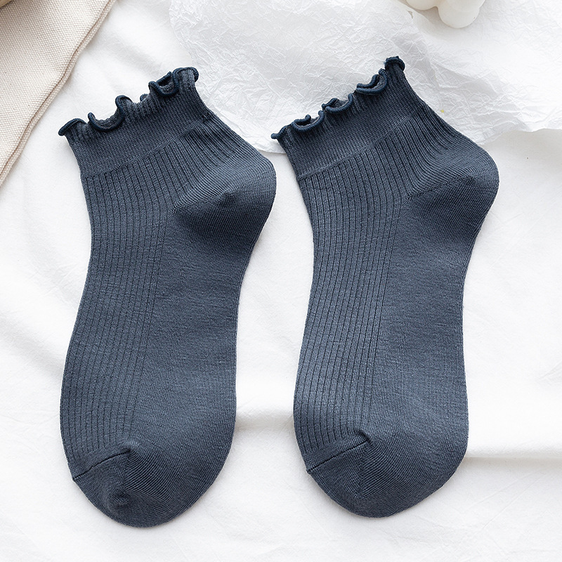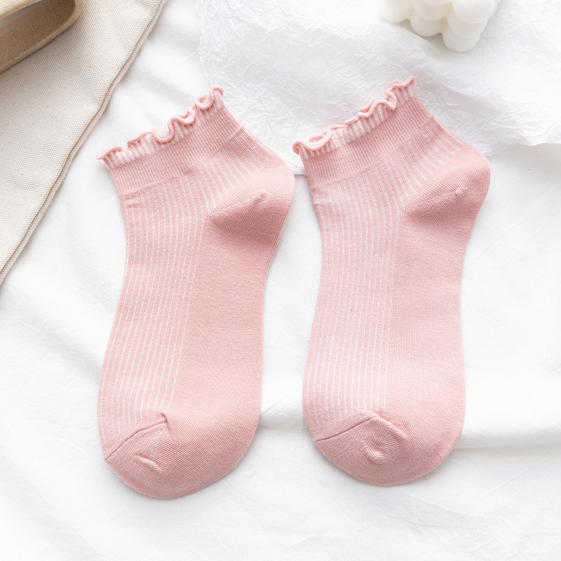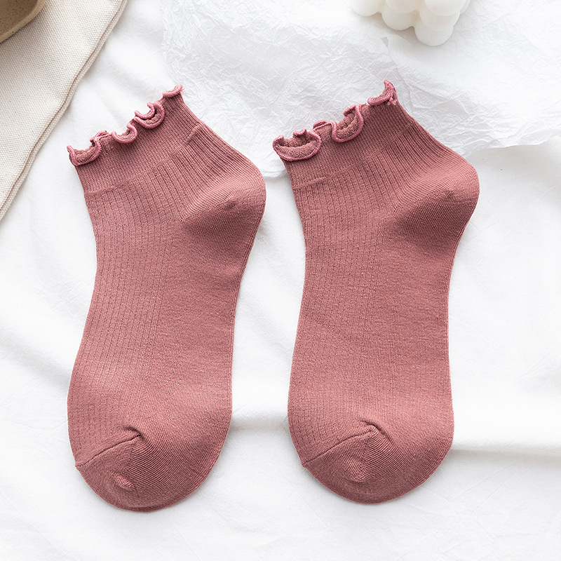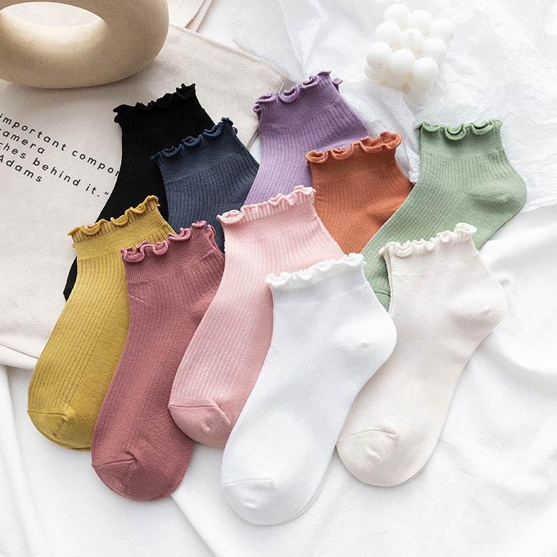 양말 여성용 일본식 봄 여름 롤업 보트 양말 느슨한 입 학생 양말 단색 귀 입 얕은 입 신선한 여성용 짧은 양말