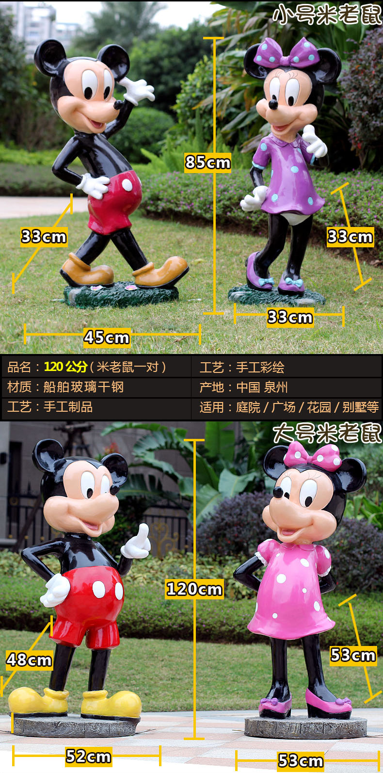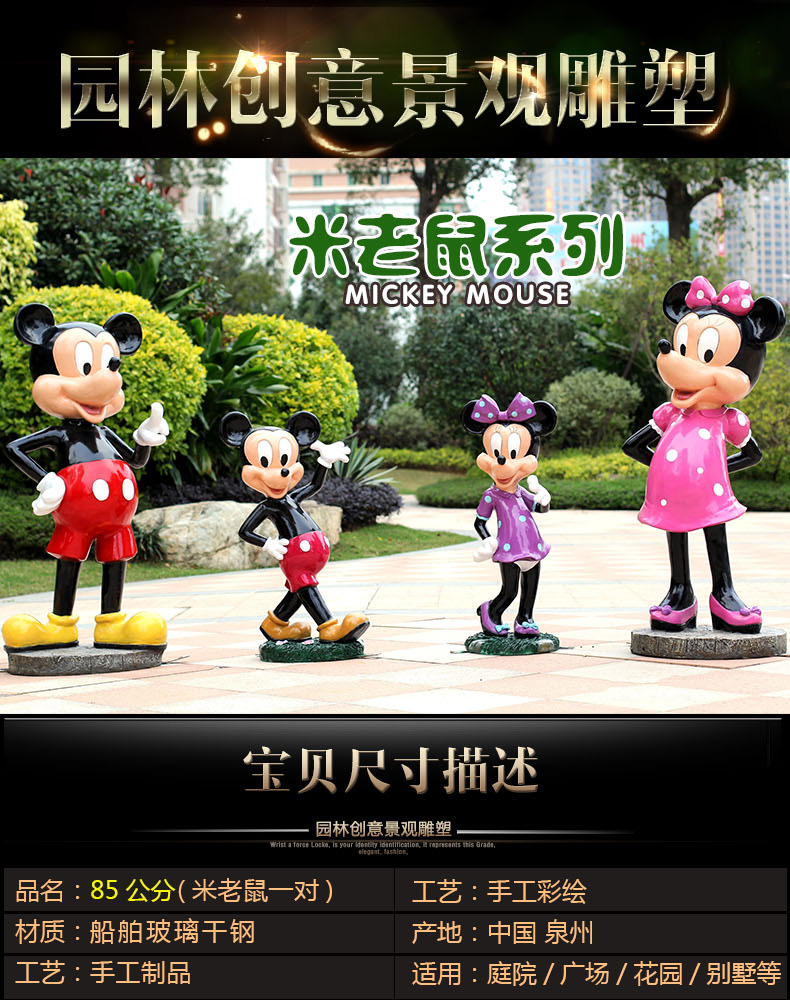 만화 조각 도널드 덕 미키 마우스 장식품 야외 정원 놀이 공원 미키 미니 야외 풍경 장식스토어 가기