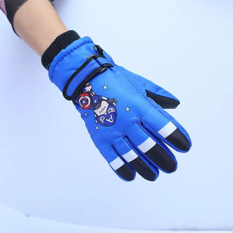 7-14 세 어린이 장갑 겨울 방수 따뜻한 기모 두꺼운 다섯 손가락 장갑 만화 인쇄 스키 승마 장갑