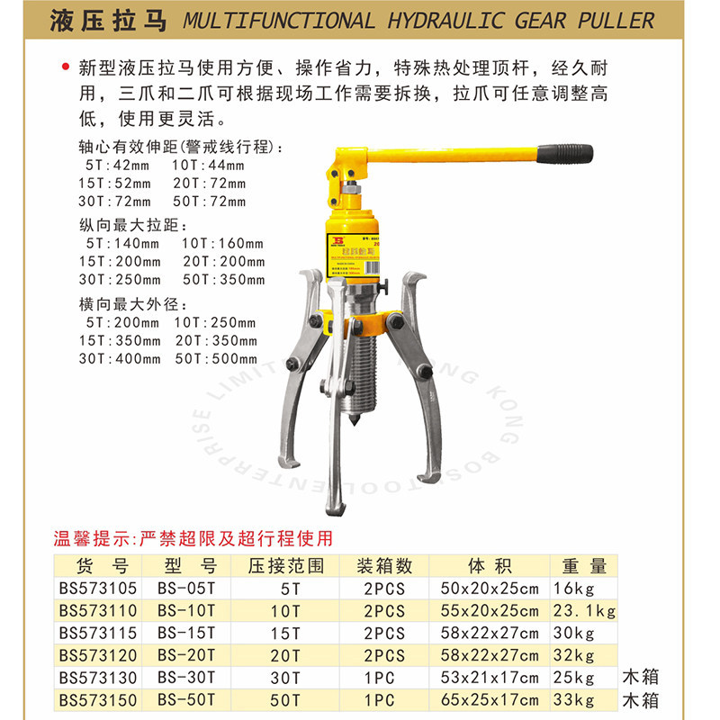 페르시아 유압 풀러 3 턱 분해 베어링 제거 전문 도구 풀러 오일 압력 다기능 삼각형 풀러