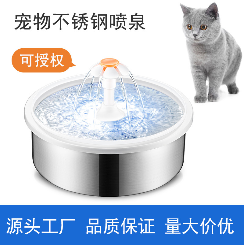 2.2L 원형 스테인리스 통 애완동물 분수 반투명 새 물통 고양이 애완동물용 물그릇스토어 가기