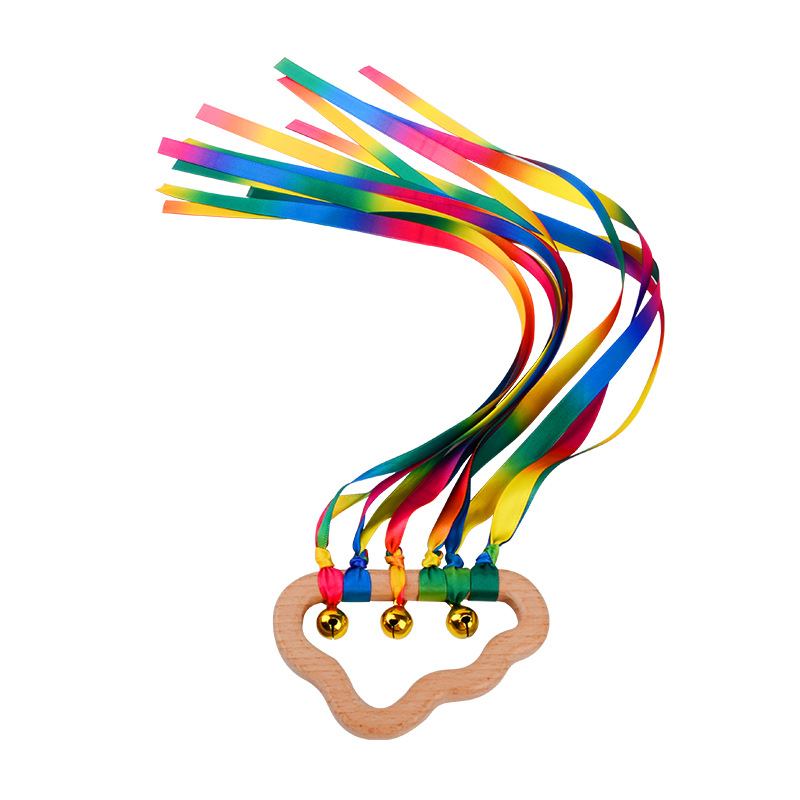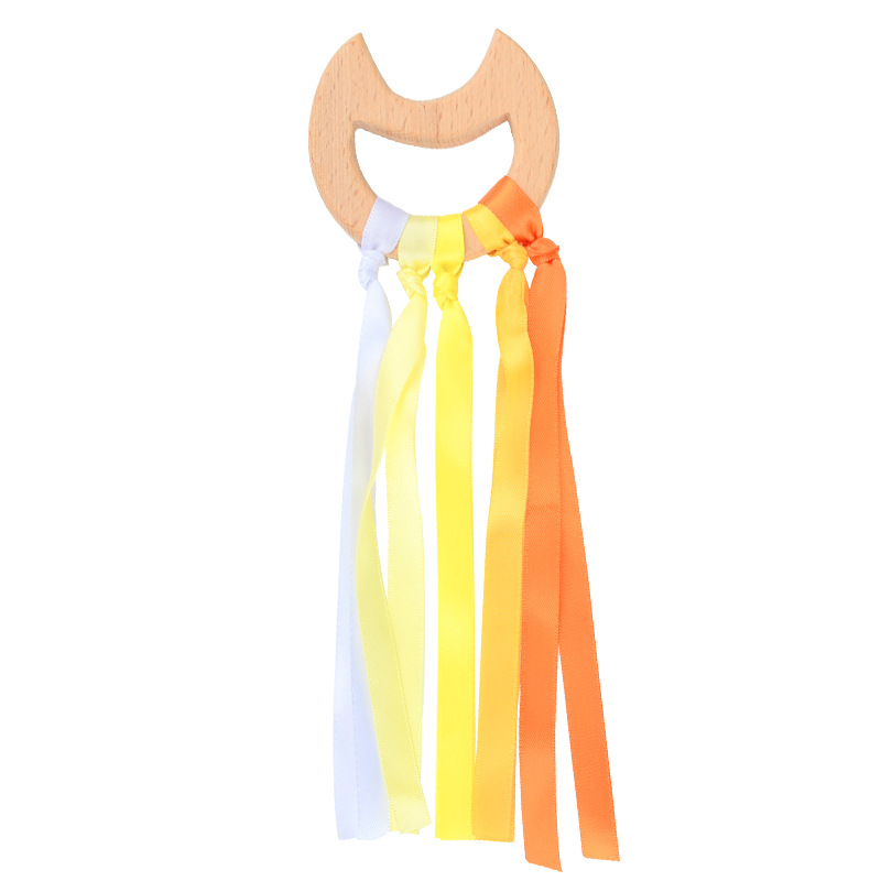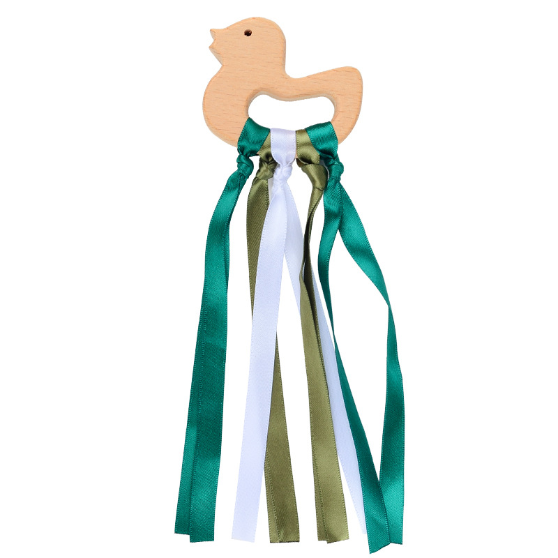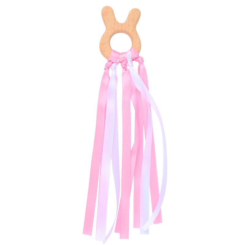 아마존 뜨거운 판매 아기 장난감 다채로운 너도밤 나무 아기 껌 장난감 리본 새틴