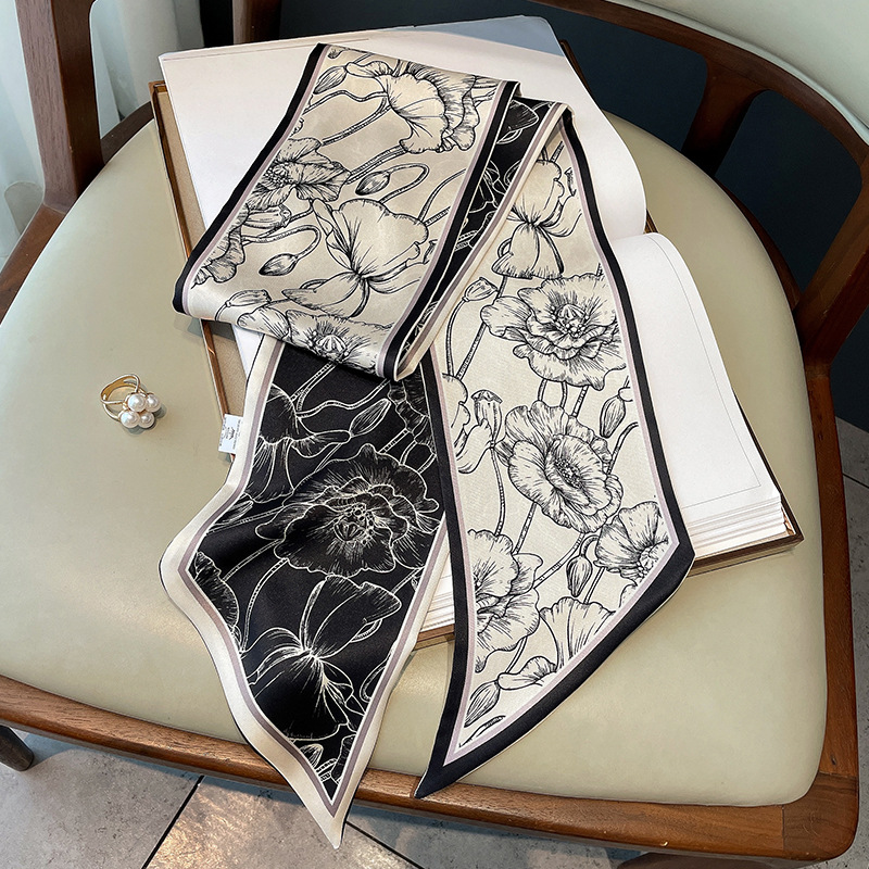 2021 가을과 겨울 새로운 따뜻한 작은 실크 스카프 여성의 얇은 좁은 긴 리본 넥타이 가방 헤어 벨트 셔츠 스카프 휴일 선물