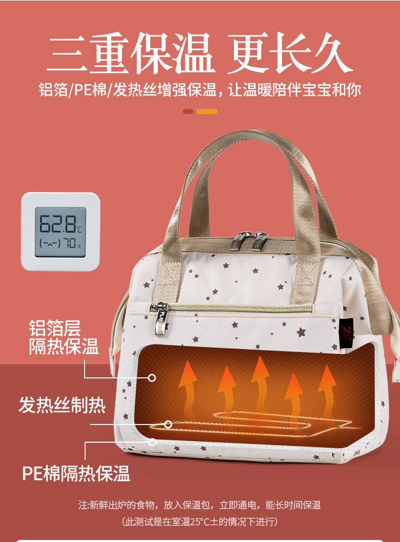 난방 도시락 핸드백 단열 가방 알루미늄 호일 두꺼운 도시락 가방 대용량 쌀 가방 손 운반 사무실 가족 식사 가방