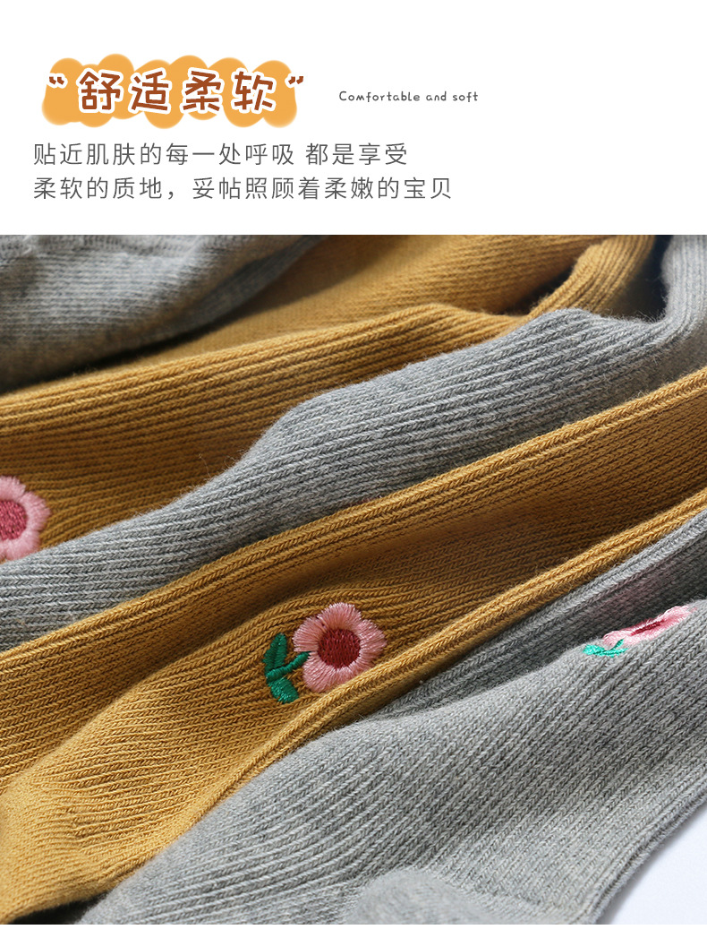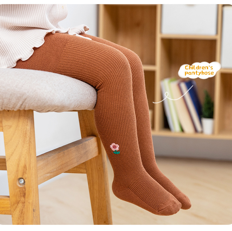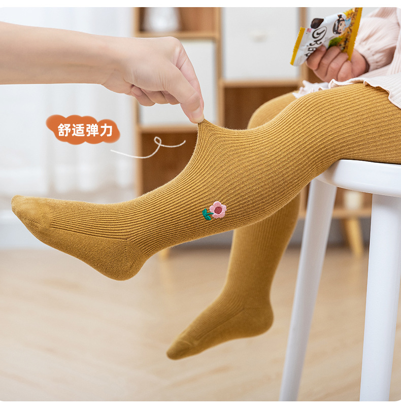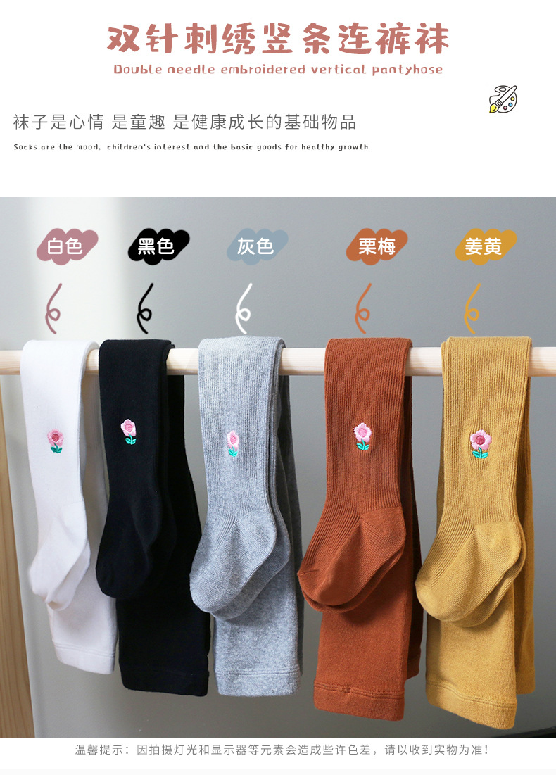 제로 스레드 헤드 한국어 이중 바늘 세로 스트립 캔디 컬러 아기 작은 중학교 큰 어린이 아기 레깅스 자수 작은 꽃 팬티 스타킹