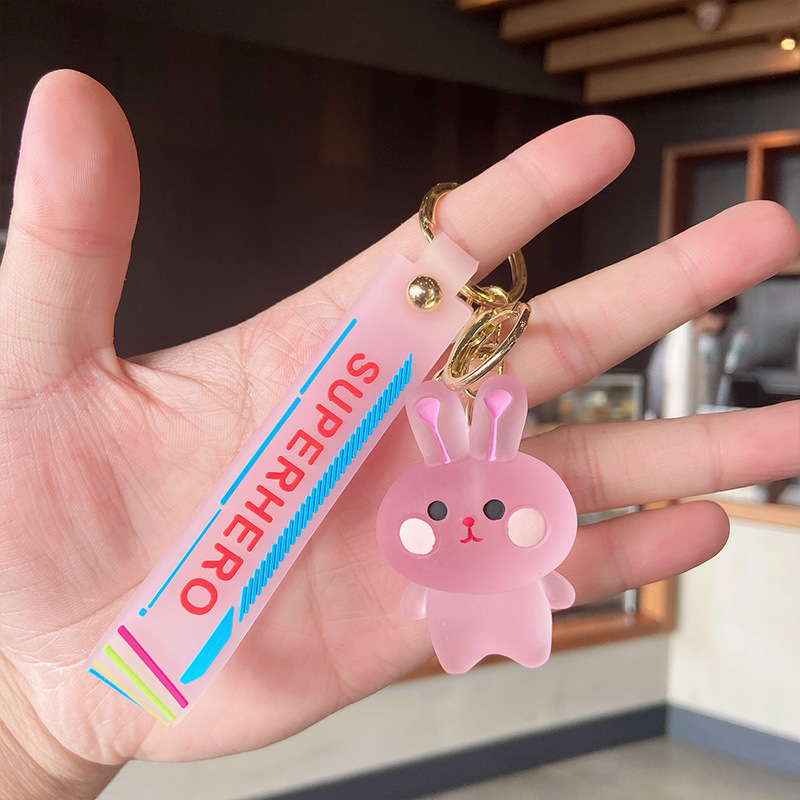 귀여운 토끼 만화 열쇠 고리 개구리 인형 교수형 키 펜던트 책가방 악세사리 아크릴 열쇠 고리
