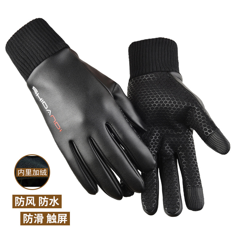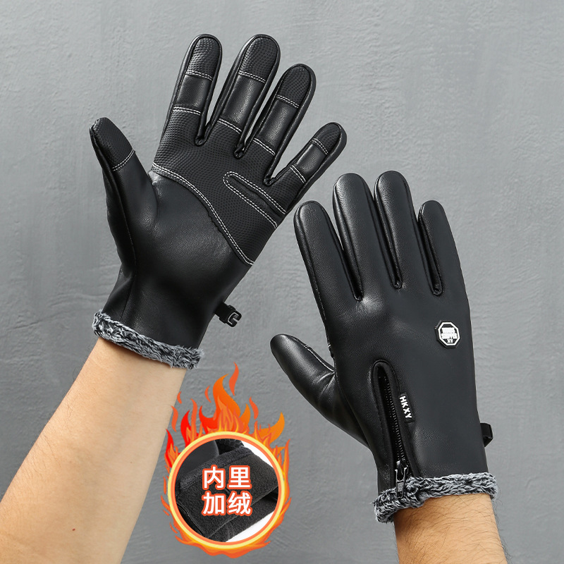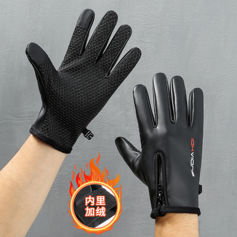두 손가락 가죽 장갑 남자의 겨울 승마 낚시 방수 오토바이 타기 기모 따뜻한 터치 스크린 테이크 아웃 미국 라이더