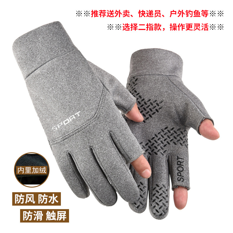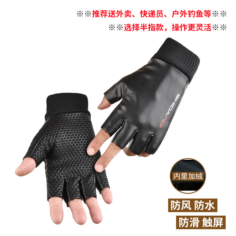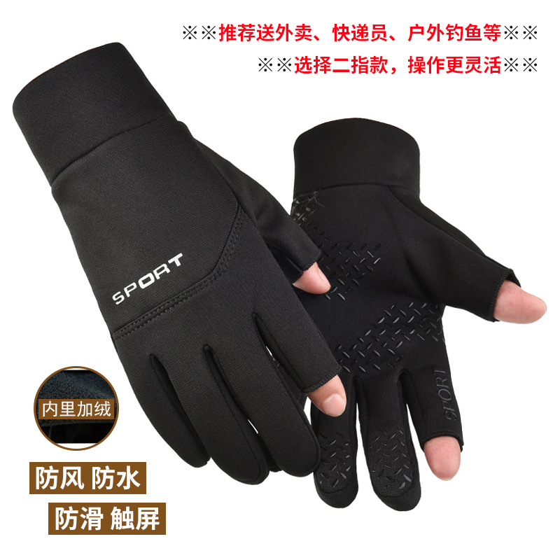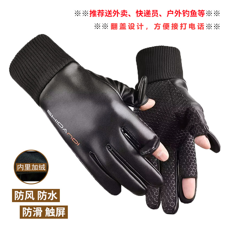 두 손가락 가죽 장갑 남자의 겨울 승마 낚시 방수 오토바이 타기 기모 따뜻한 터치 스크린 테이크 아웃 미국 라이더스토어 가기