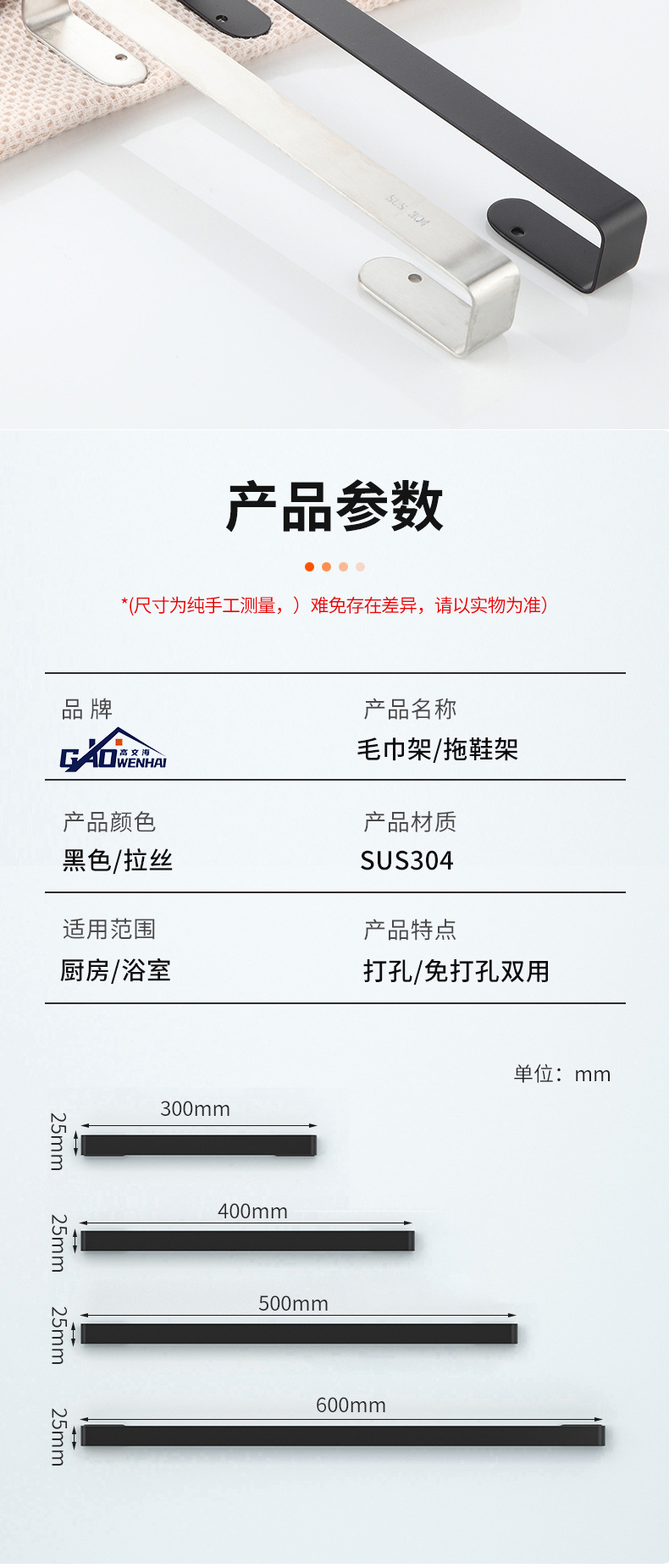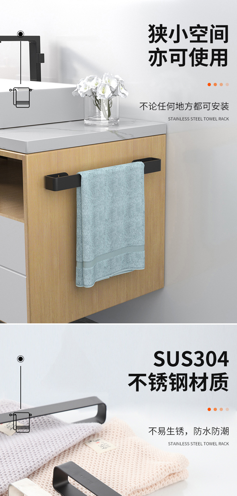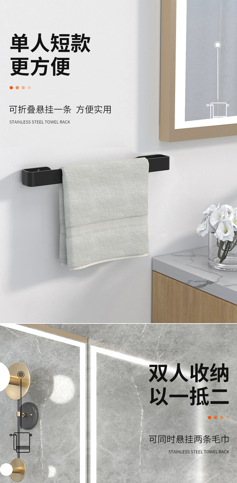 • 블랙 30cm 스테인레스 스틸 타월 바