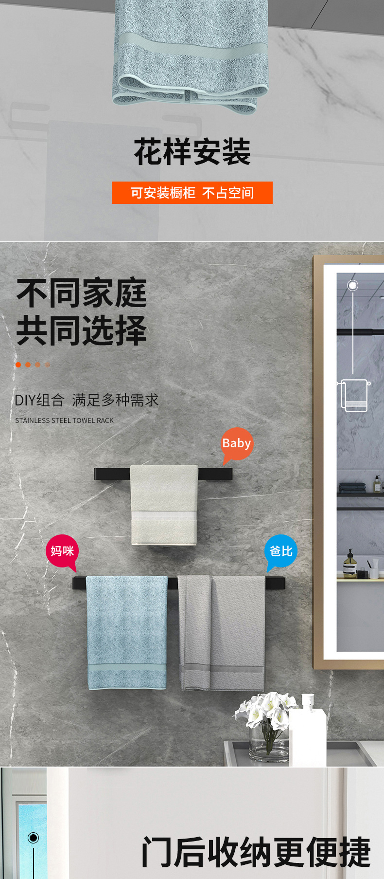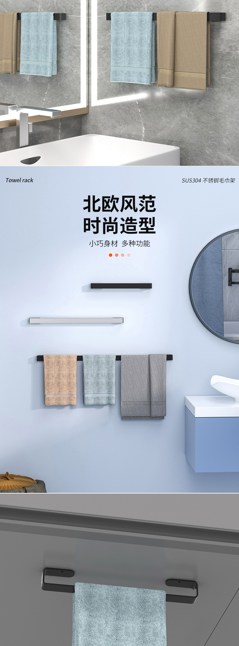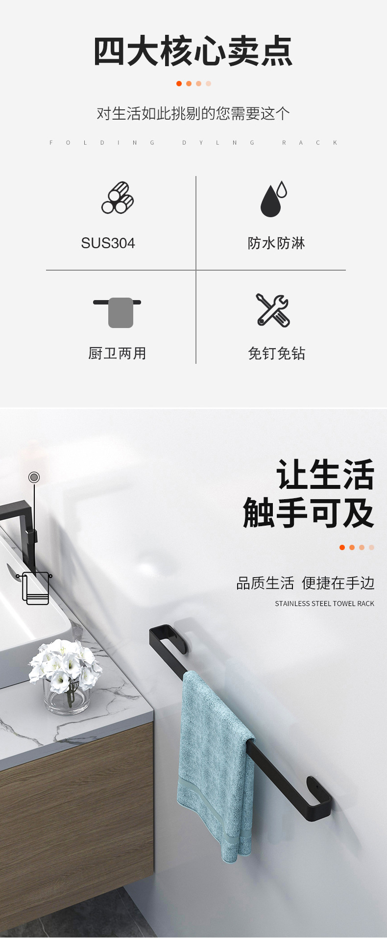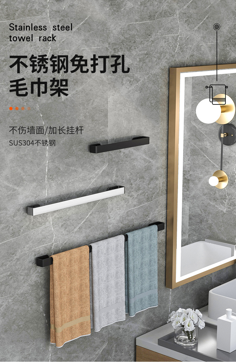 펀치 없는 욕실 벽걸이 형 스테인레스 스틸 수납 타월 바 발코니 화장실 기숙사 배수 타월 랙