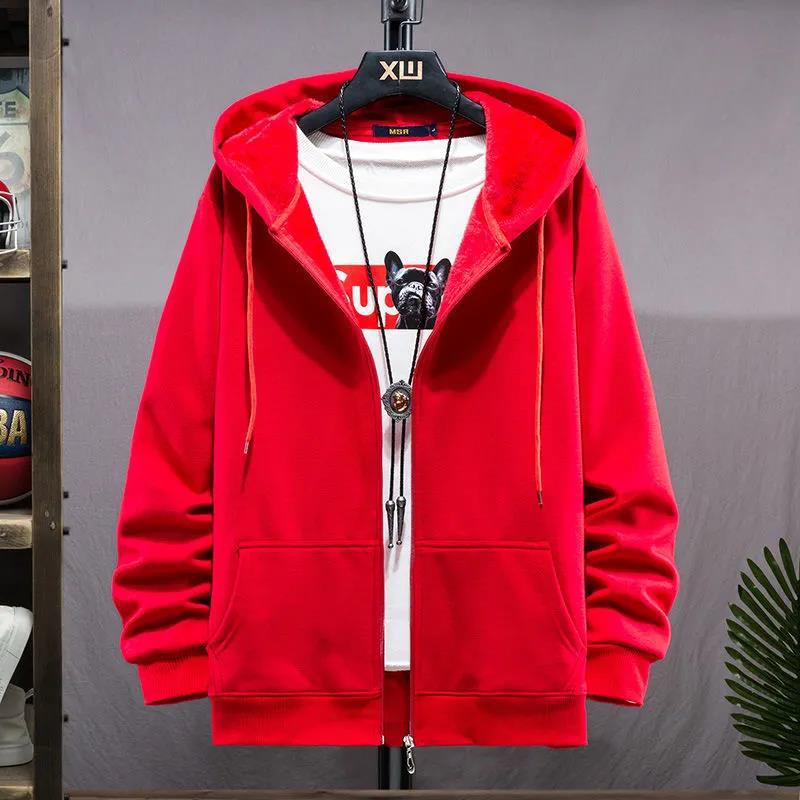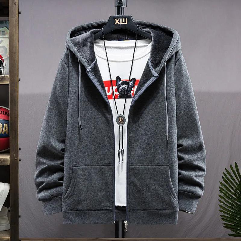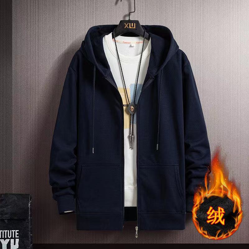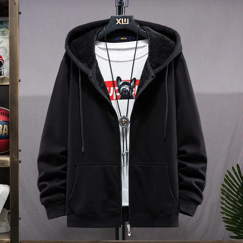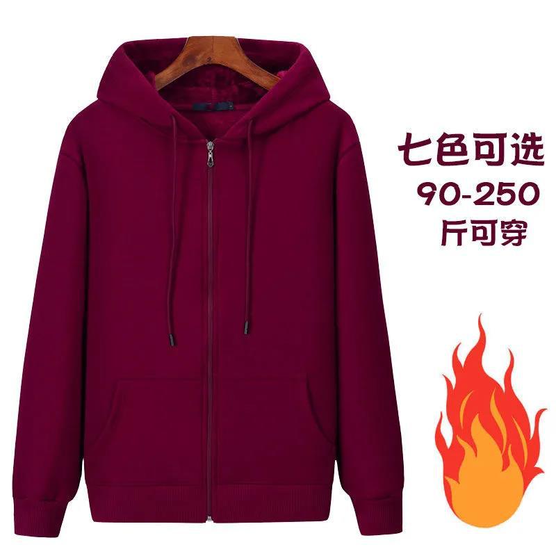 플러스 사이즈 남자의 까마귀 가을과 겨울 단색 기모 후드 지퍼 스웨터 유럽과 미국 느슨한 스포츠 까마귀 남자의 유행스토어 가기