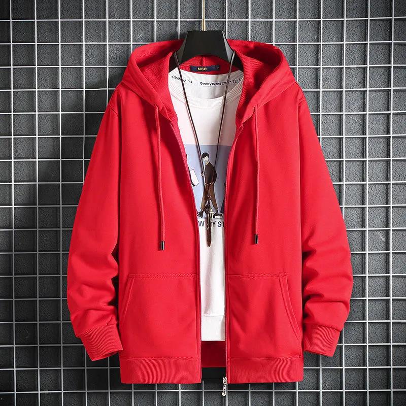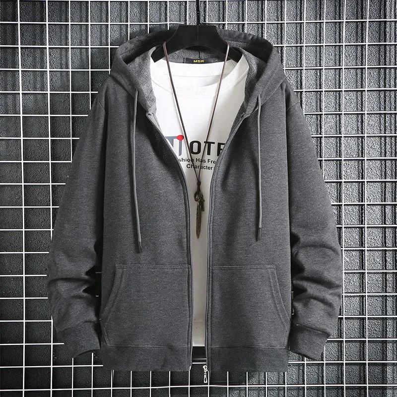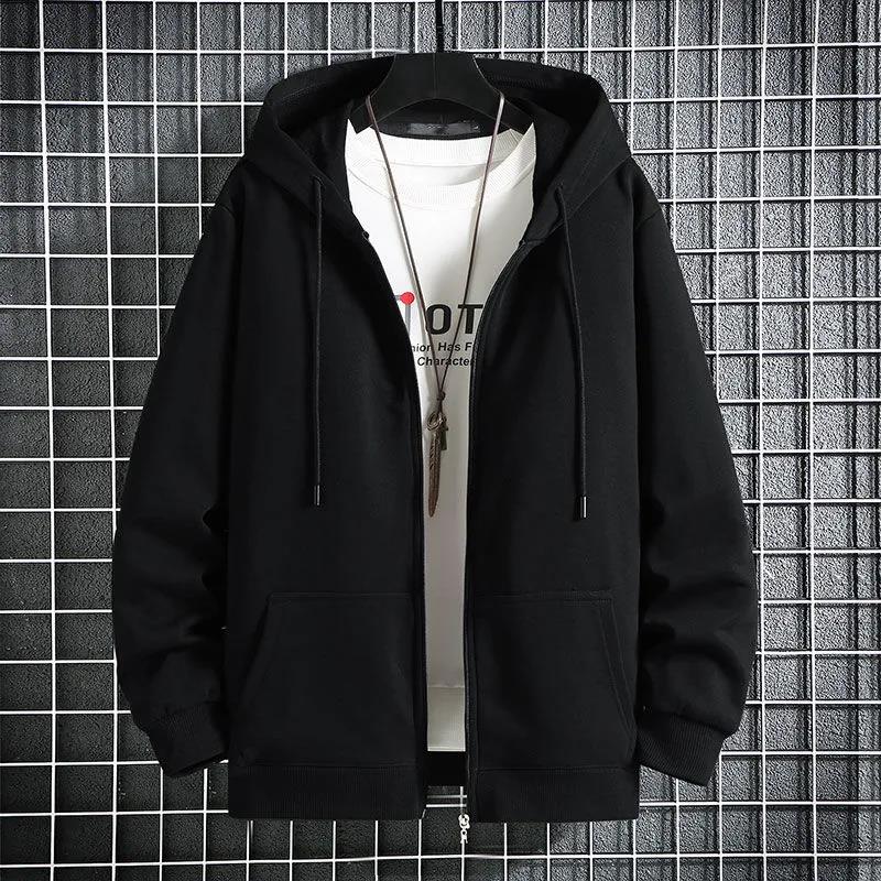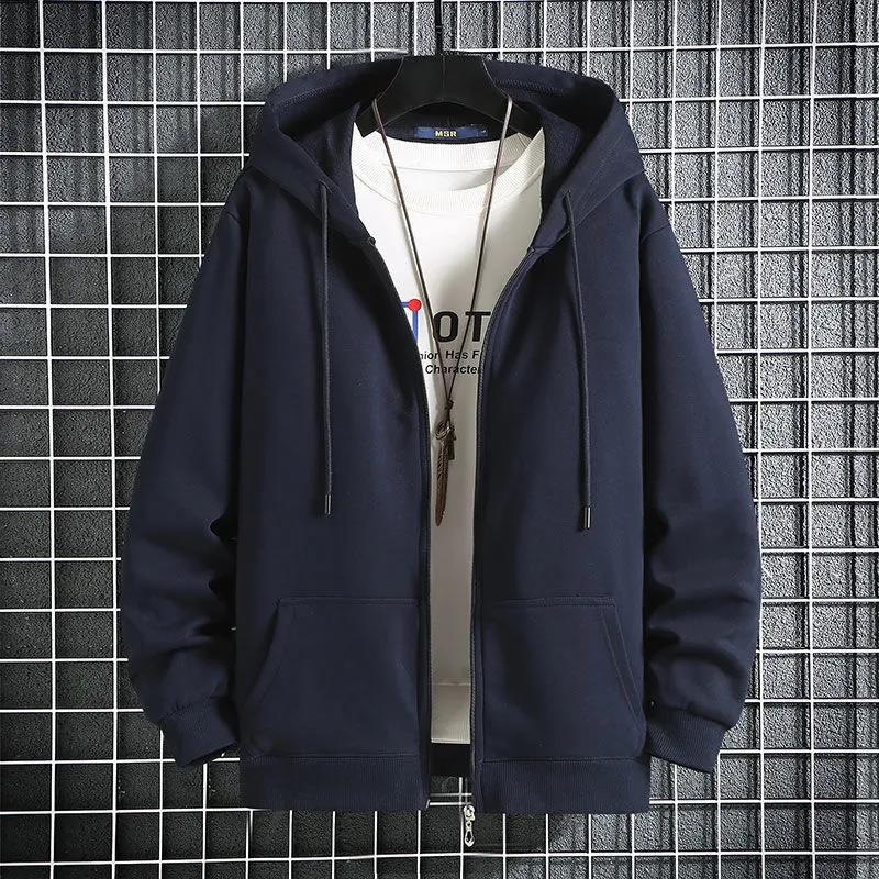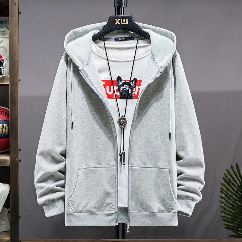플러스 사이즈 남자의 까마귀 가을과 겨울 단색 기모 후드 지퍼 스웨터 유럽과 미국 느슨한 스포츠 까마귀 남자의 유행스토어 가기