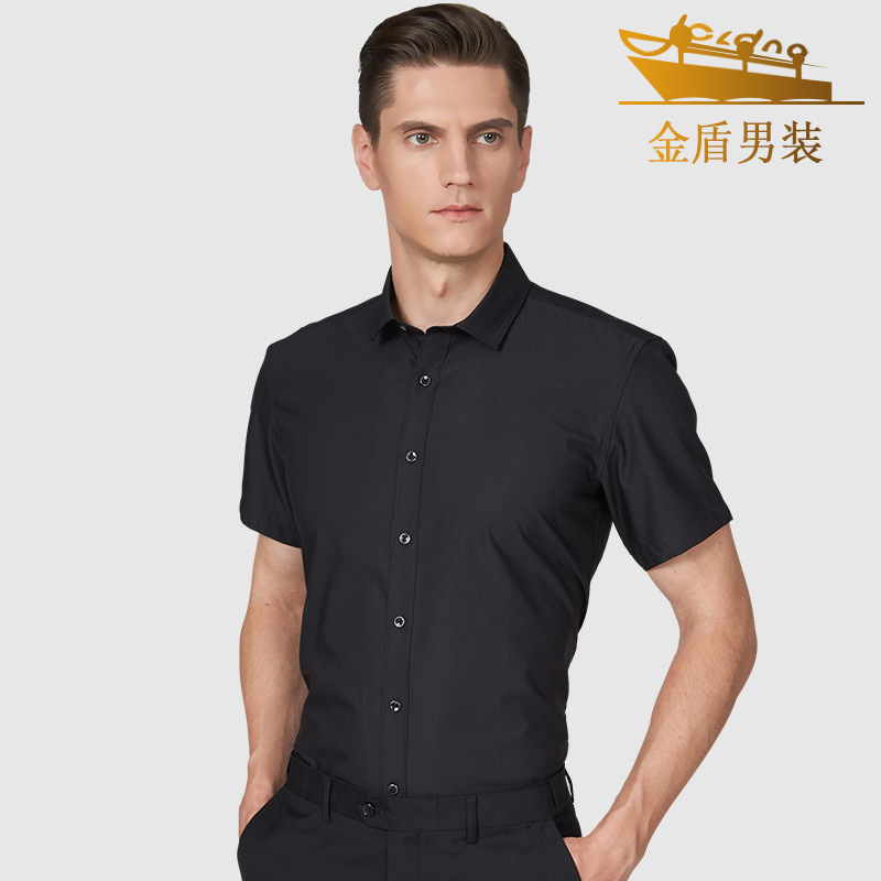 Jindun 여름 반팔 셔츠 남자의 비 다림질 대나무 섬유 비즈니스 캐주얼 원피스 반팔 흰색 작업복 셔츠 사용자 정의스토어 가기