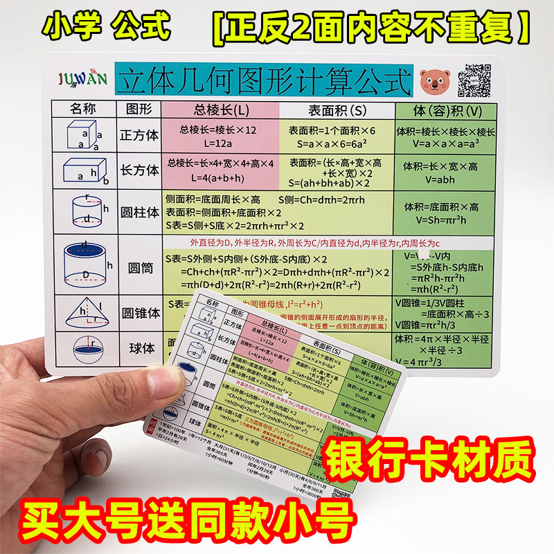 초등학교 수학 공식 책 1-6 학년 단위 변환 코어 지식 영역 볼륨 공식 속기 카드