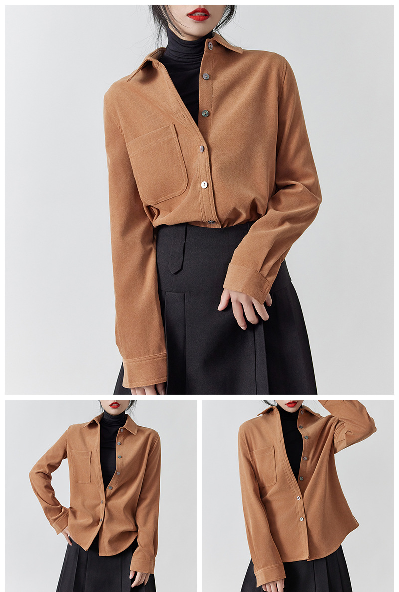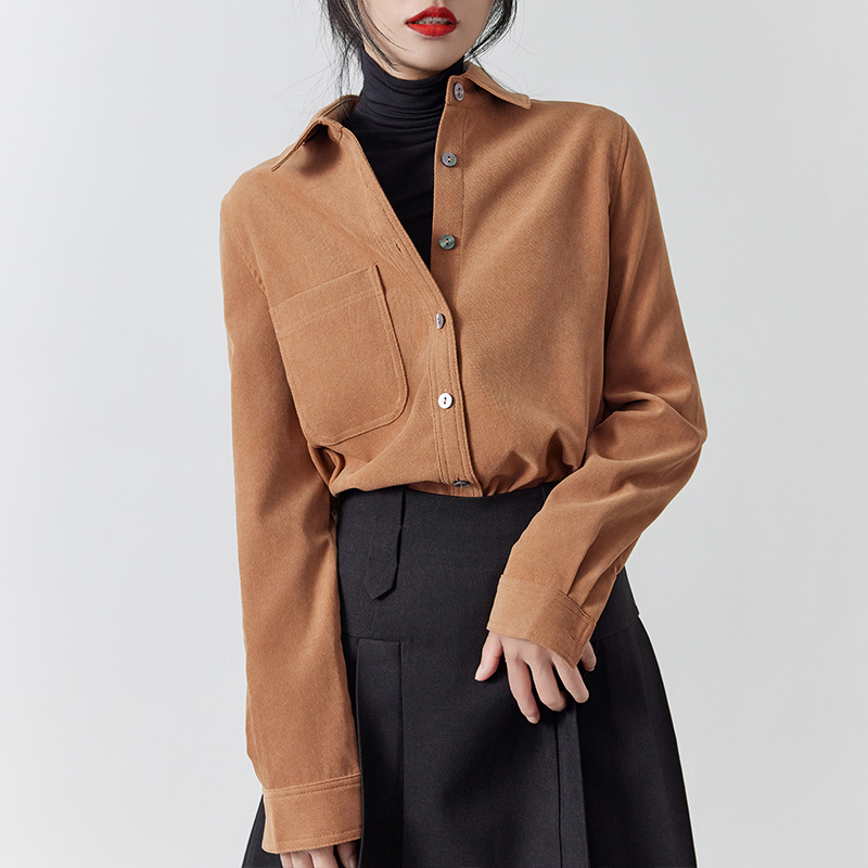메일라드 스타일 봄 가을 따뜻한 레트로 기모 코듀로이 루즈핏 슬림핏 아우터 긴팔 셔츠 여성 레이어드 셔츠