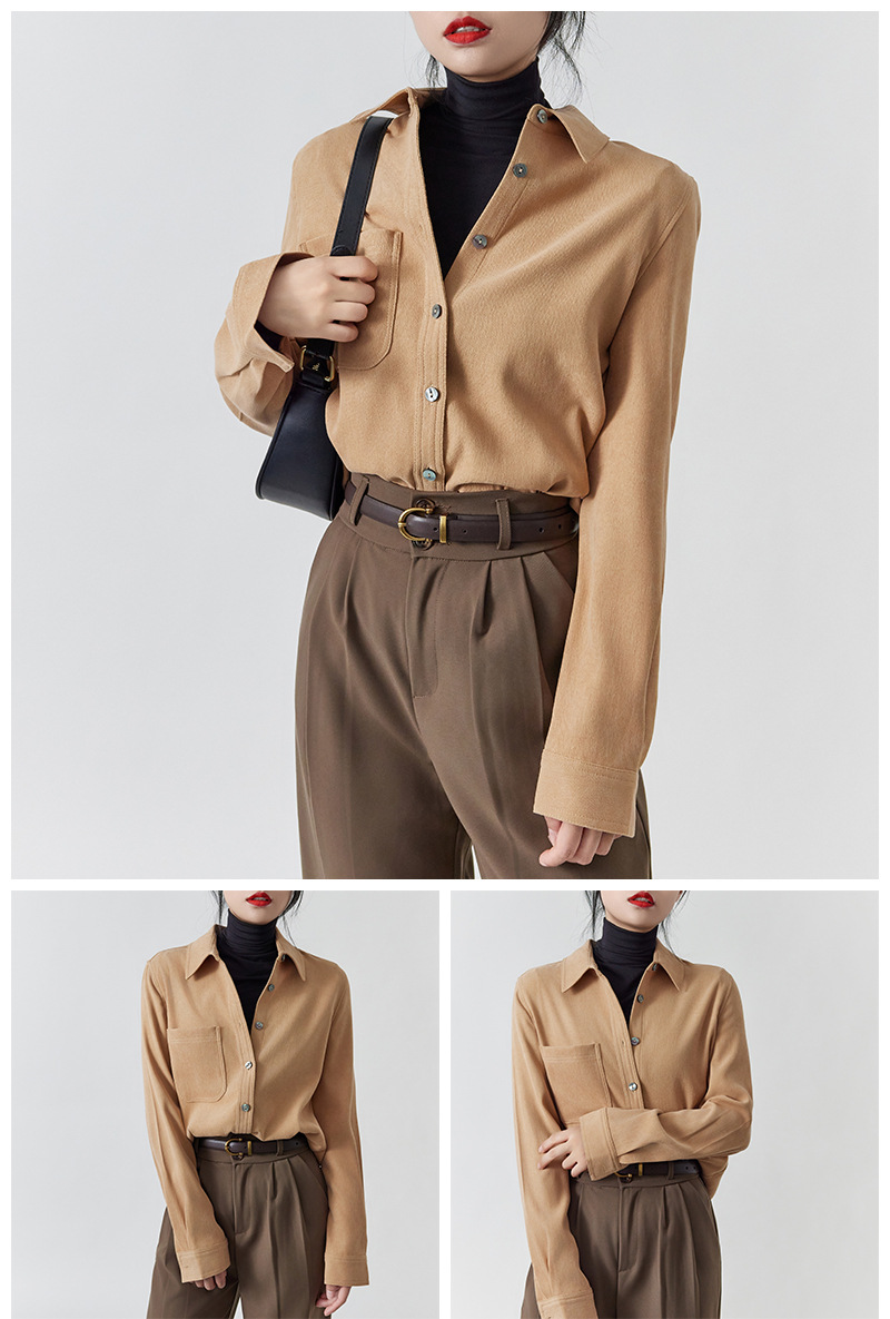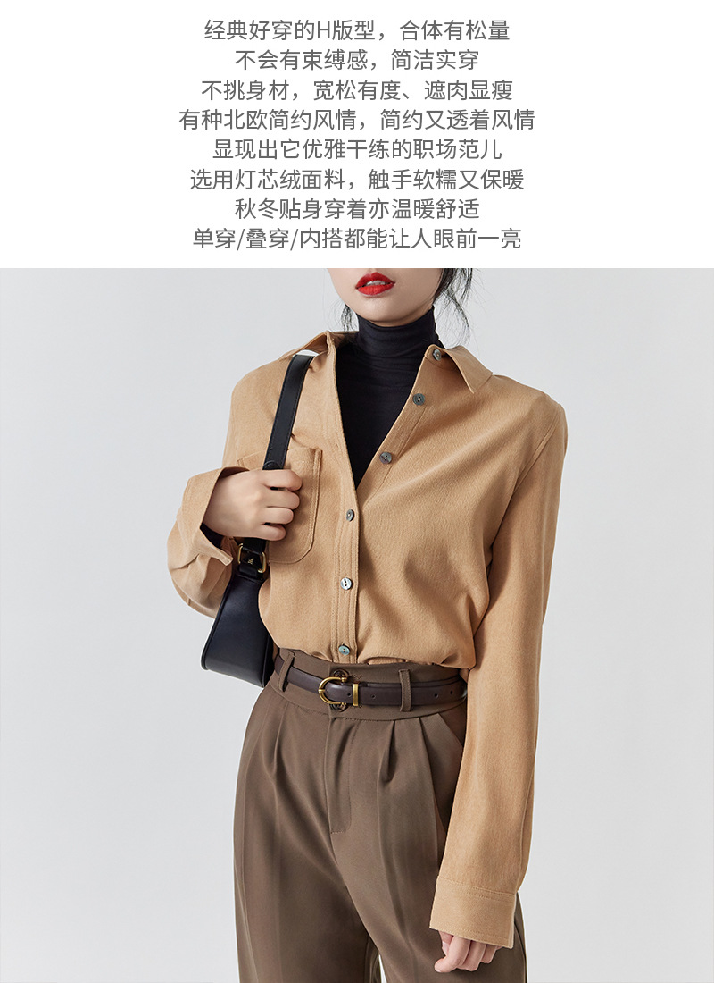 메일라드 스타일 봄 가을 따뜻한 레트로 기모 코듀로이 루즈핏 슬림핏 아우터 긴팔 셔츠 여성 레이어드 셔츠스토어 가기