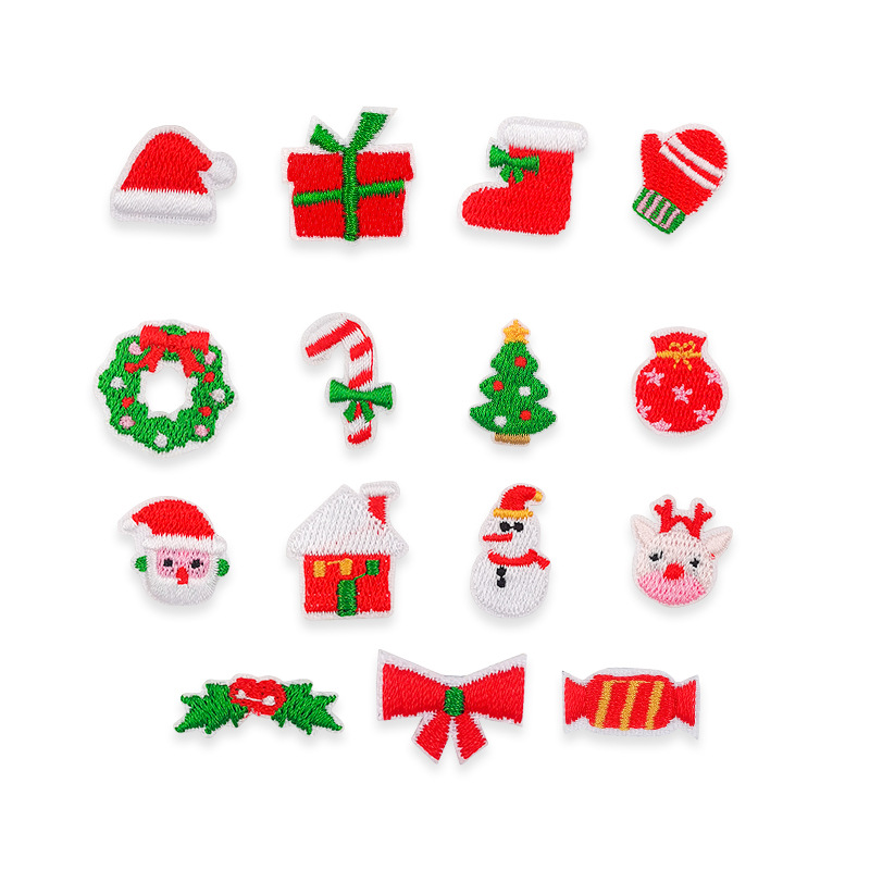 재고 도매 크리스마스 천 스티커 눈사람 양말 장식 패치 컴퓨터 자수 스티커 미니 자체 붙여 넣기스토어 가기