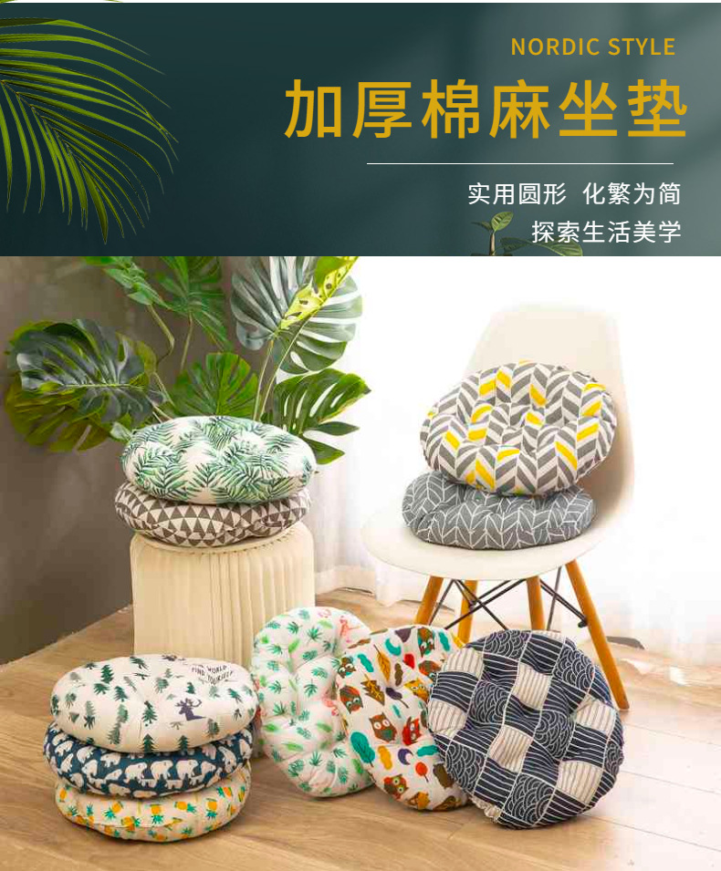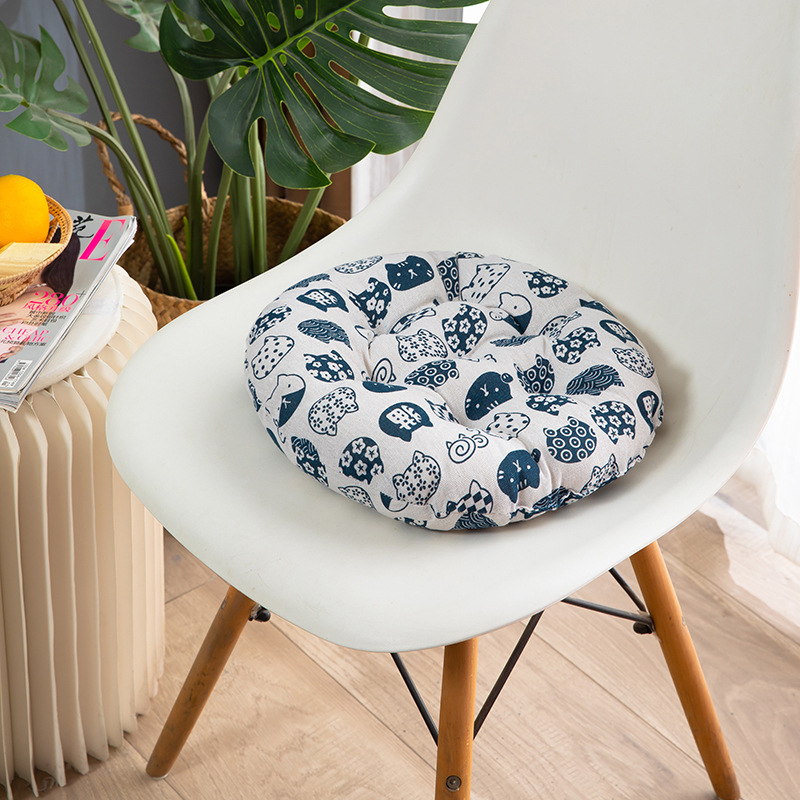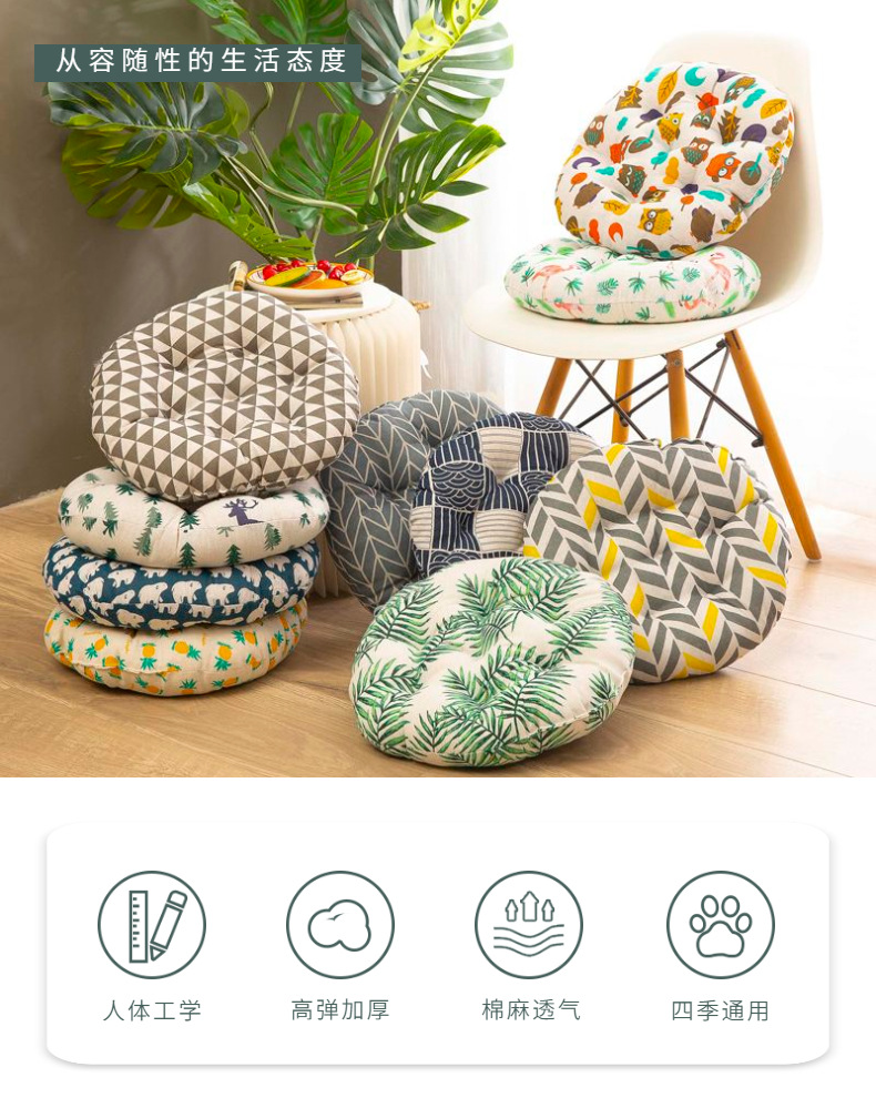 면 및 린넨 라운드 쿠션 엉덩이 쿠션 인 스타일 간단한 만화 두껍게 4 시즌 학생 기숙사 식당 의자 쿠션스토어 가기