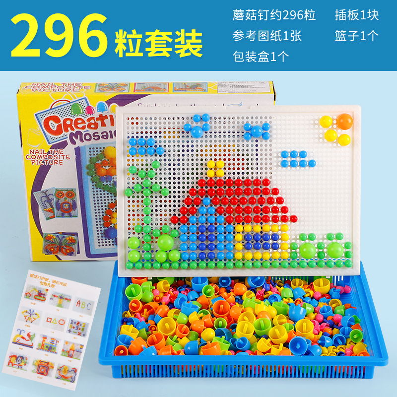 创意296粒蘑菇钉玩具 拼插板组合 幼儿园儿童巧巧钉拼图3-7岁