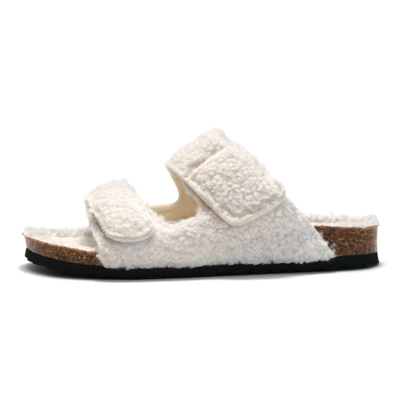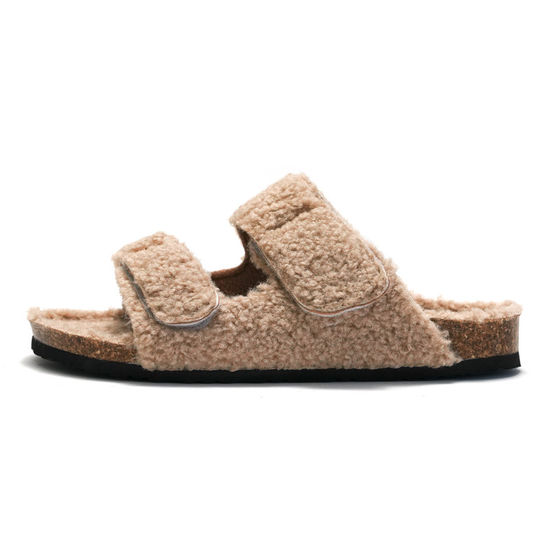 2025 Ruizu 가을, 겨울 새로운 여성 코르크 슬리퍼 겉옷 여성 스웨이드 따뜻한 샌들 비치 신발 한 단어 남자스토어 가기