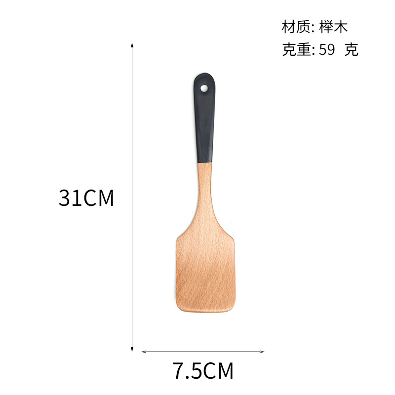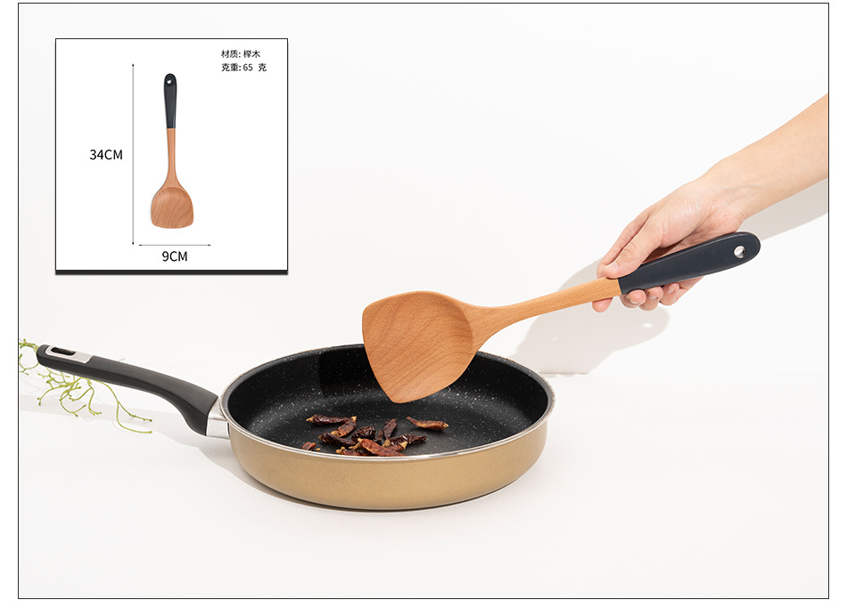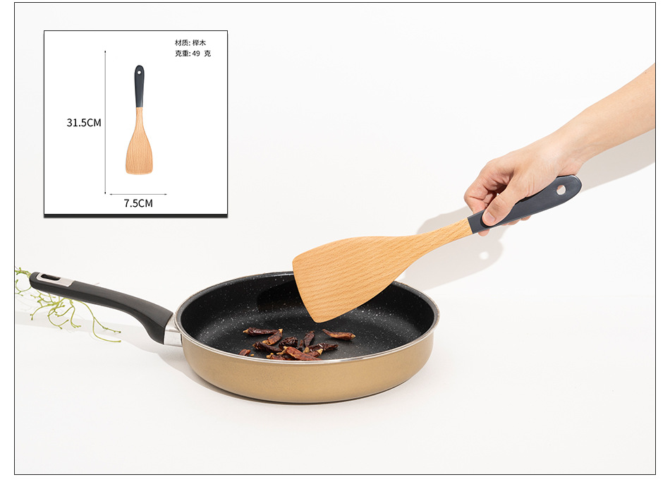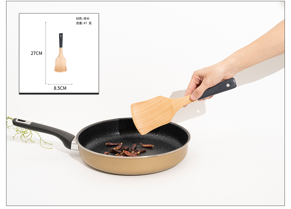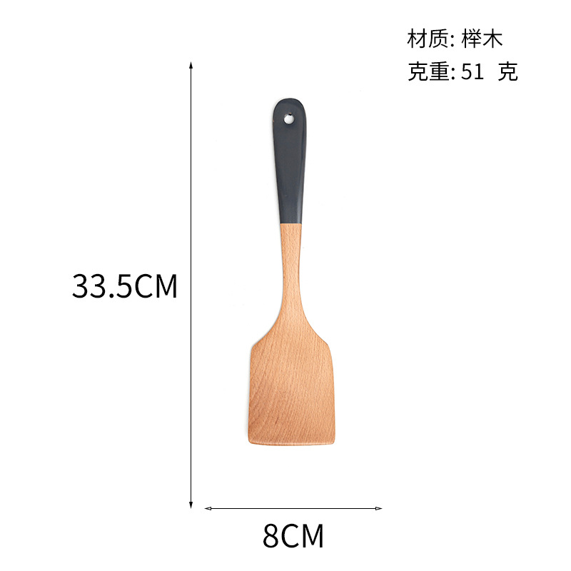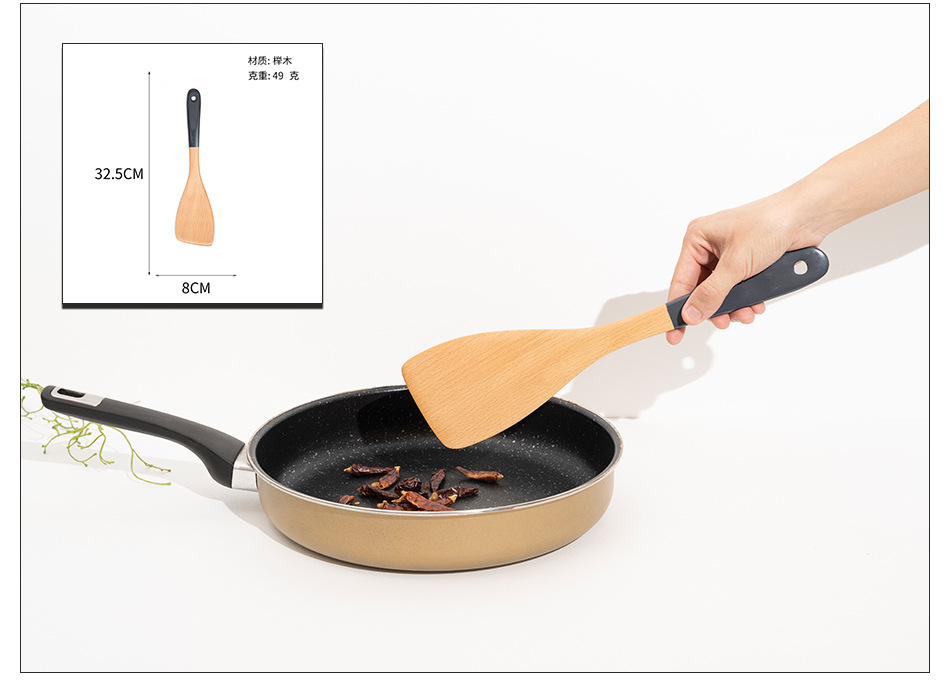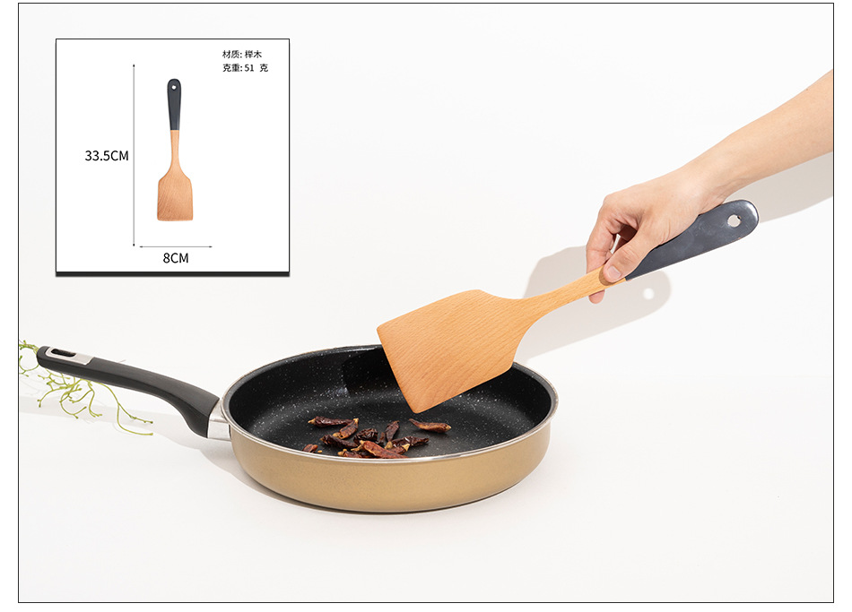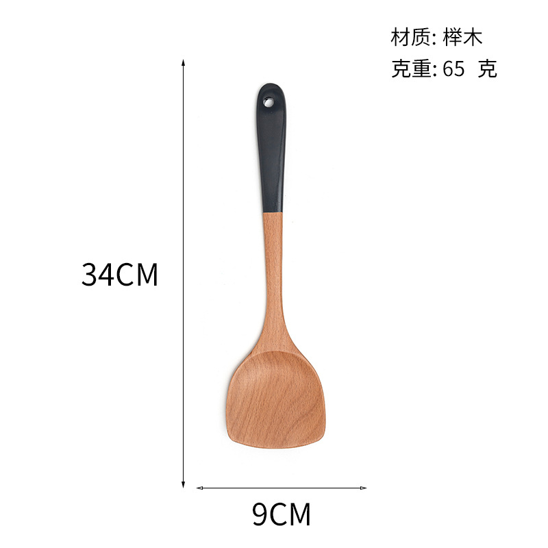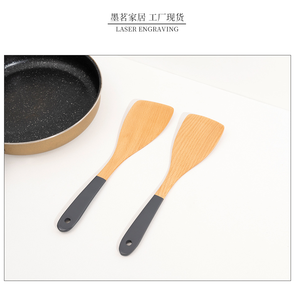 Mo Ming 너도밤나무 손잡이 페인트 손잡이 스쿠틀러 붙지 않는 요리 스푼 스쿠틀러 세트 볶음 삽 나무 숟가락 일본식 주방 용품스토어 가기