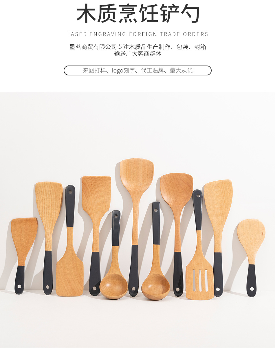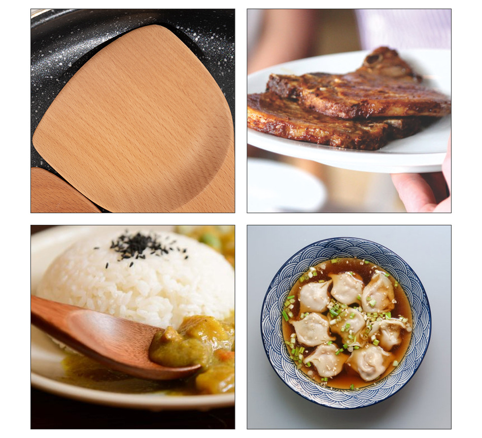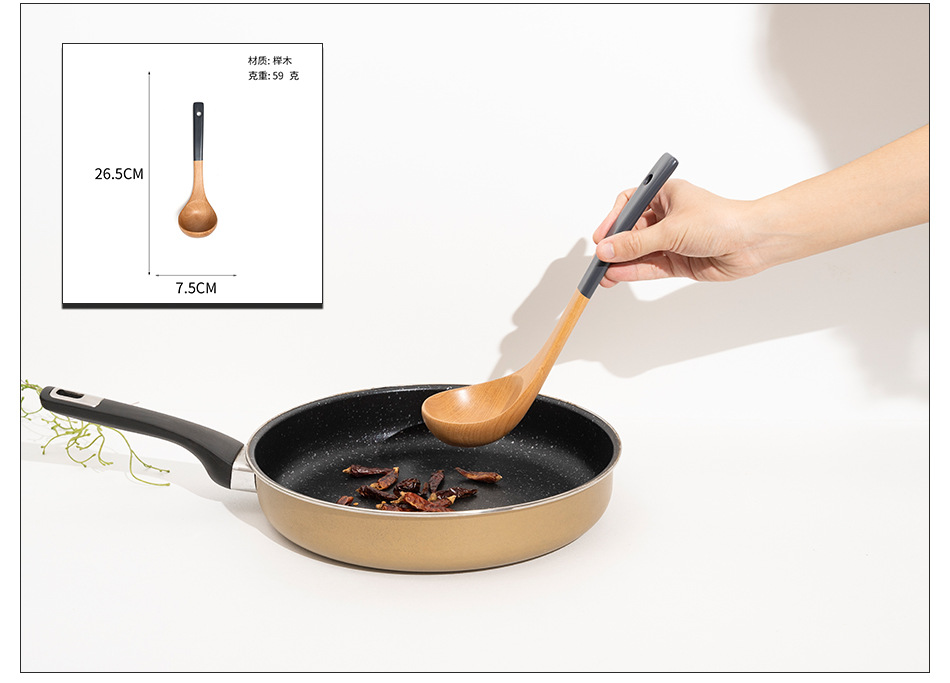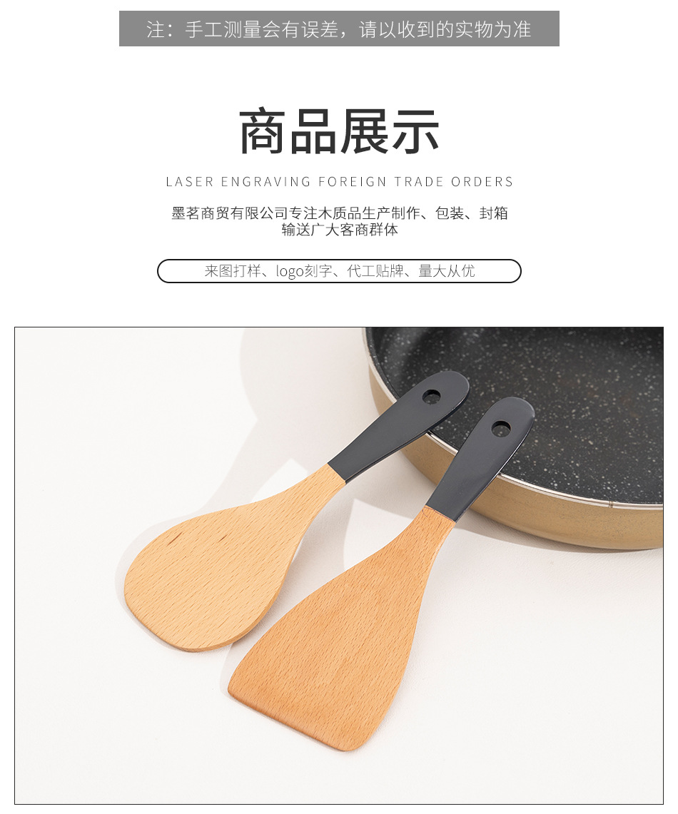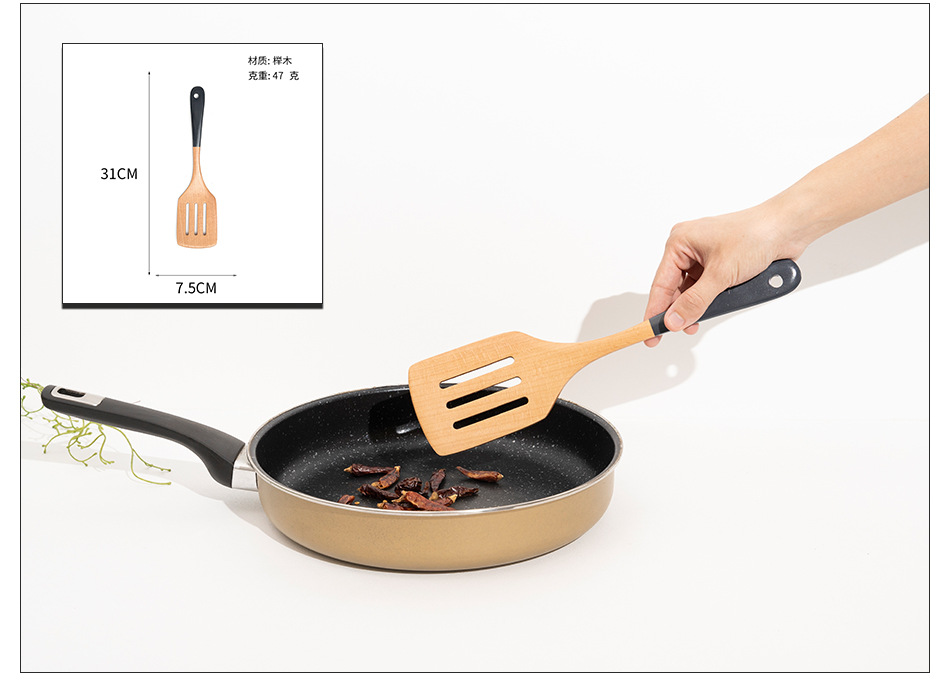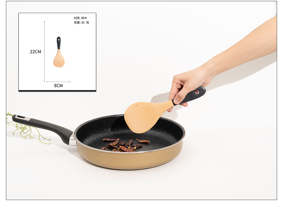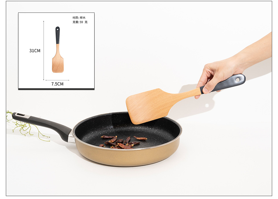 Mo Ming 너도밤나무 손잡이 페인트 손잡이 스쿠틀러 붙지 않는 요리 스푼 스쿠틀러 세트 볶음 삽 나무 숟가락 일본식 주방 용품스토어 가기