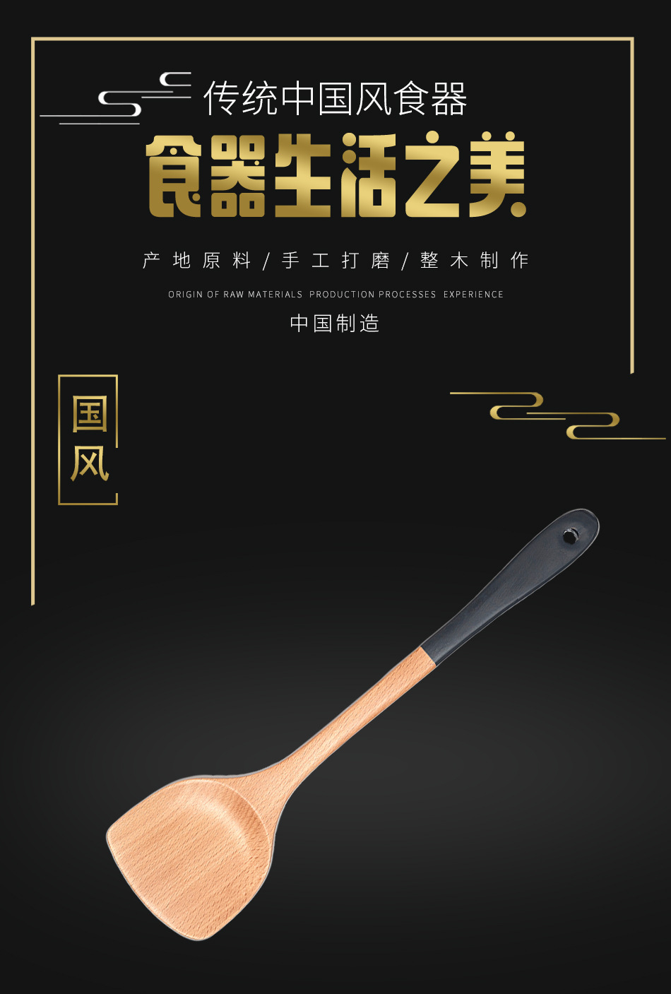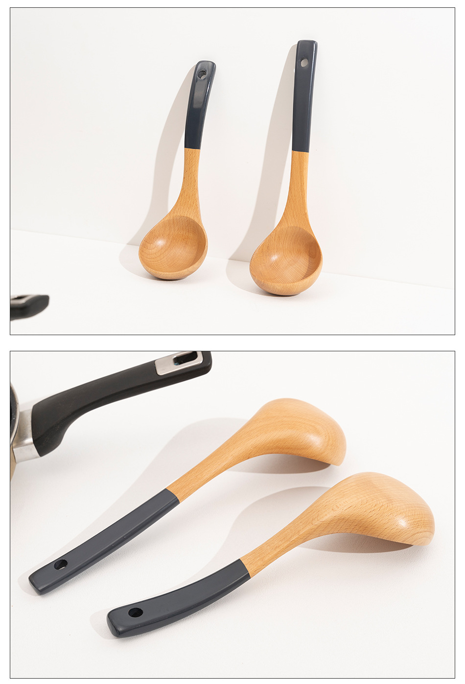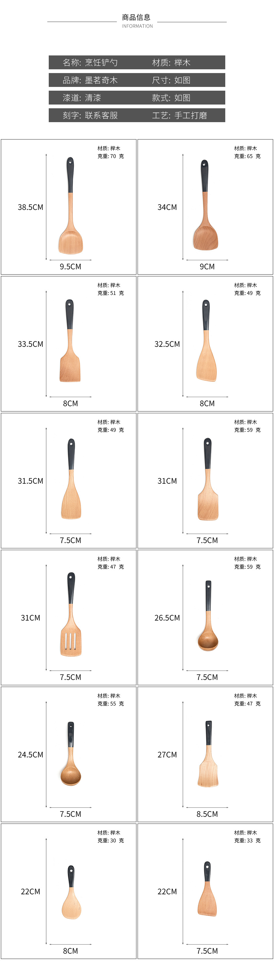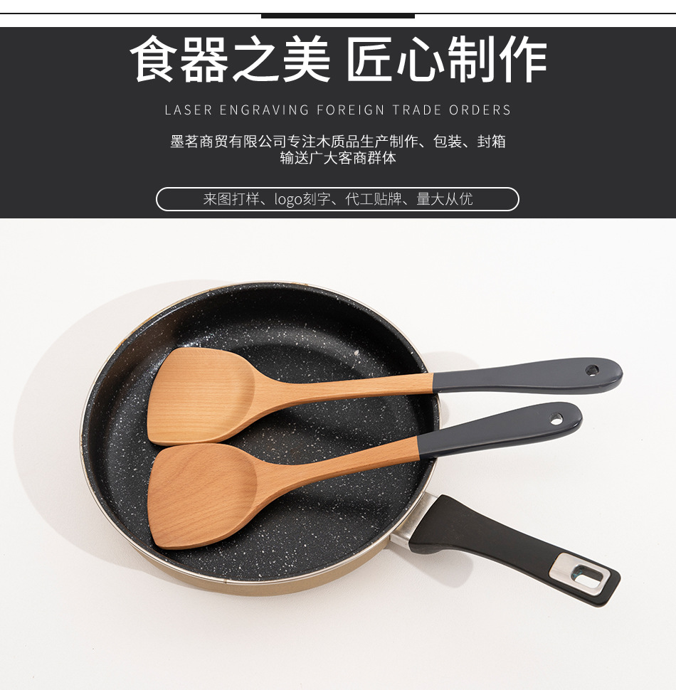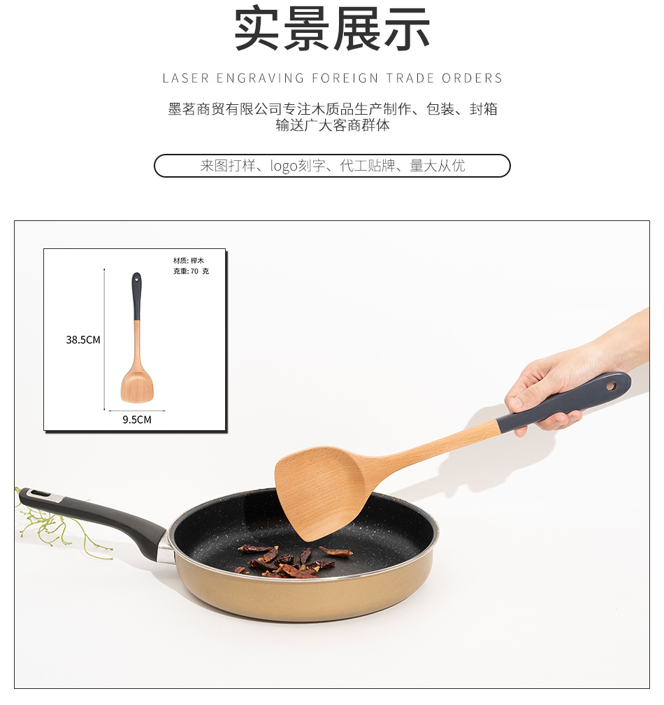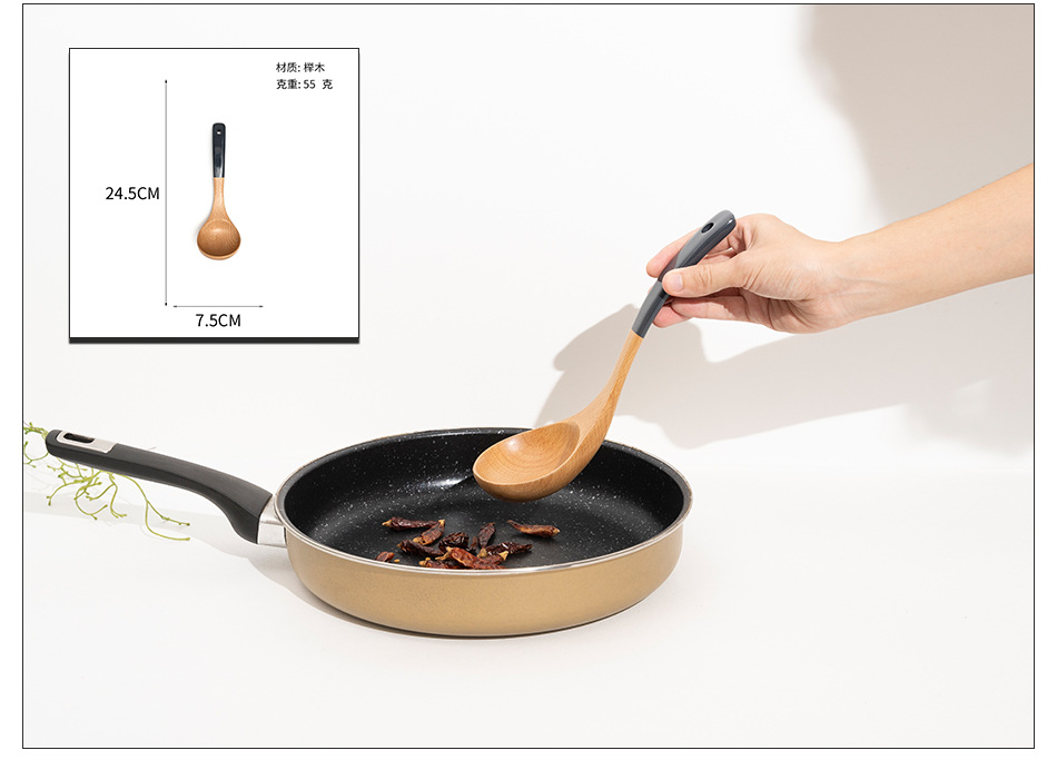 Mo Ming 너도밤나무 손잡이 페인트 손잡이 스쿠틀러 붙지 않는 요리 스푼 스쿠틀러 세트 볶음 삽 나무 숟가락 일본식 주방 용품스토어 가기