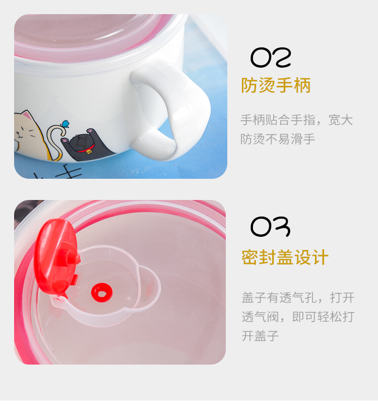 뚜껑이있는 일본식 만화 세라믹 인스턴트 국수 그릇 아침 식사 컵 학생 기숙사 손잡이가있는 대형 귀리 컵 고정 가능 로고스토어 가기