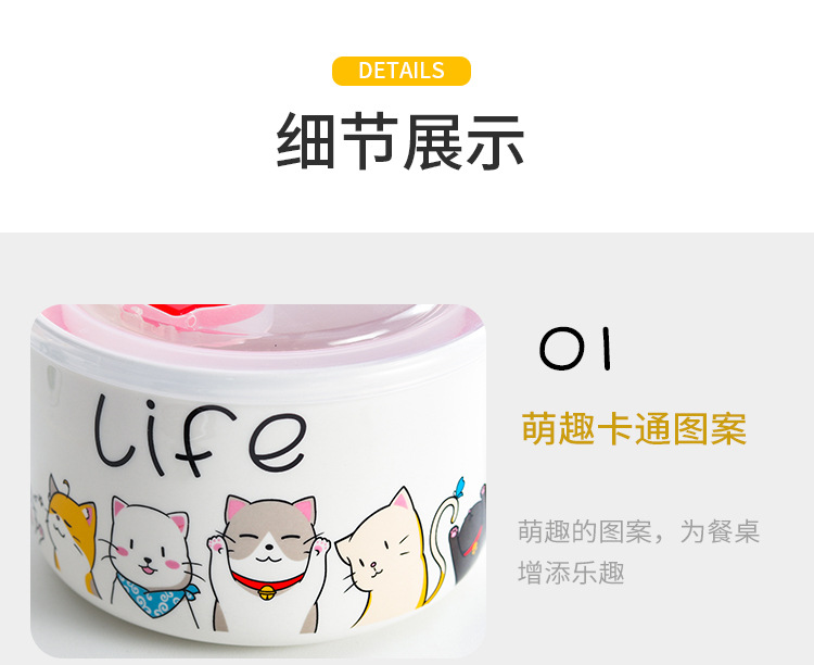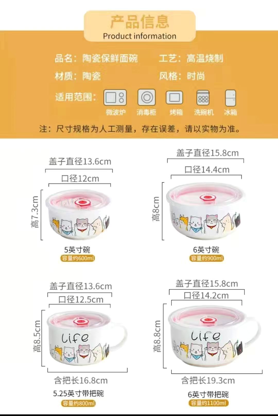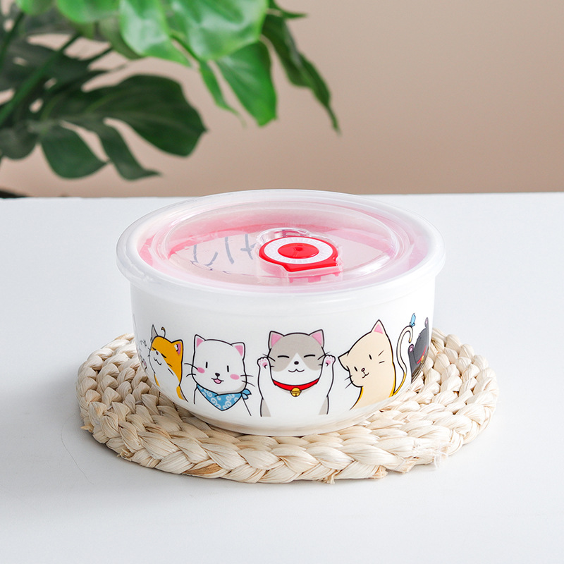 • 손잡이가없는 만화 고양이 6 인치 국수 그릇 (뚜껑 포함)