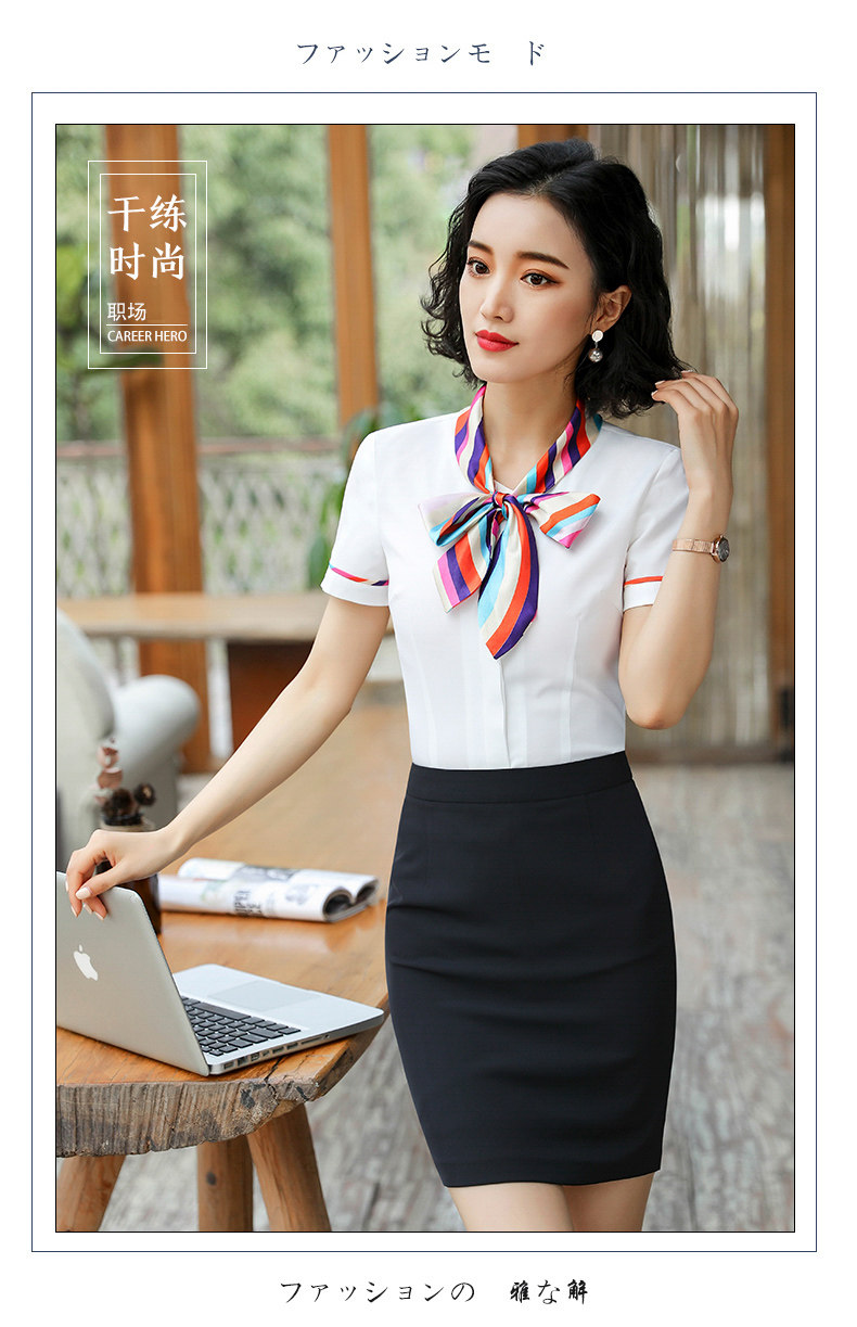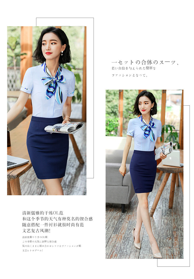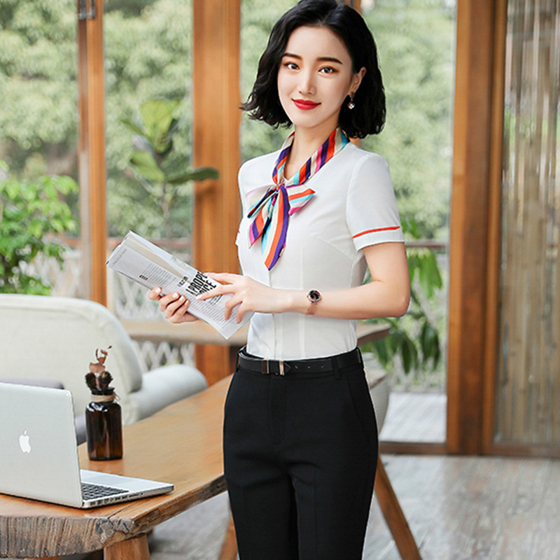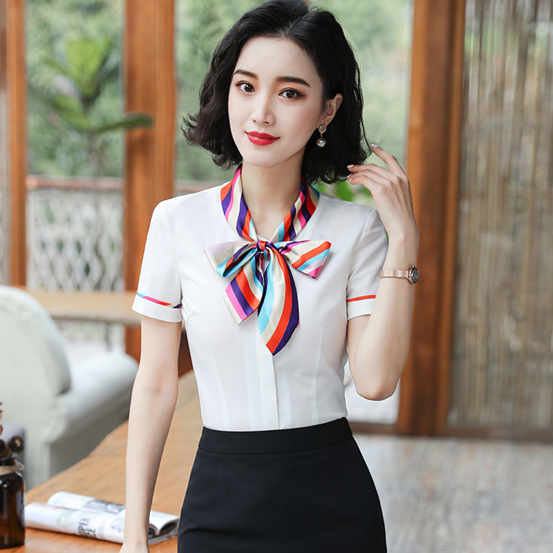 호텔 프론트 데스크 계산원 작업복 미용실 셔츠 작업복 반팔 여성 기질 프로페셔널 웨어 웨스턴 스타일 OL 셔츠