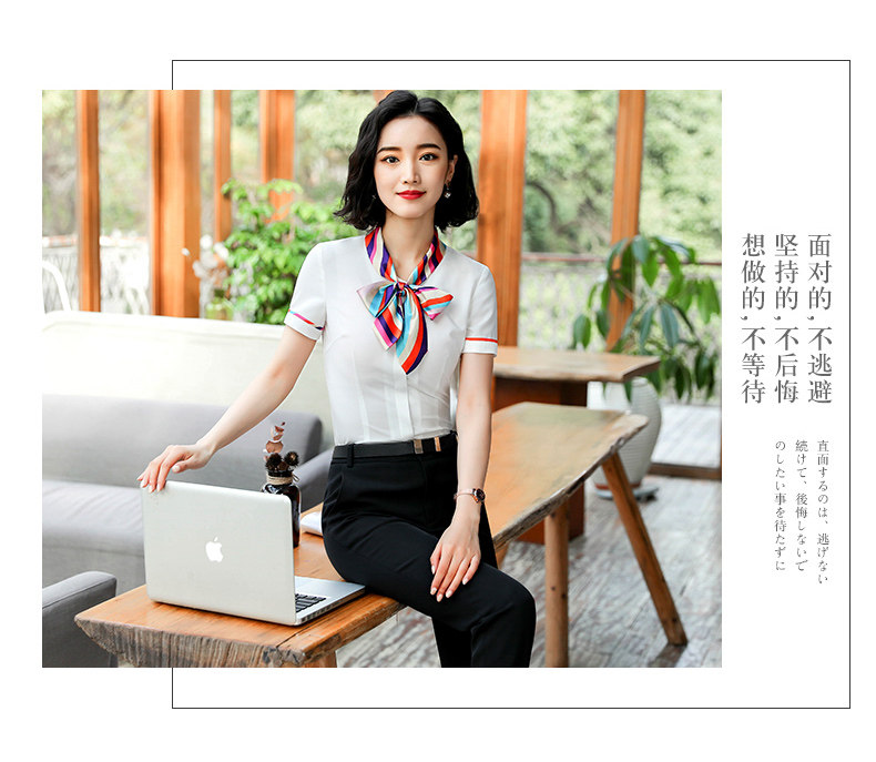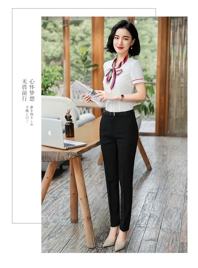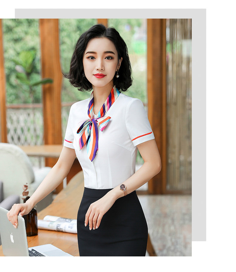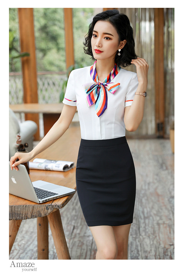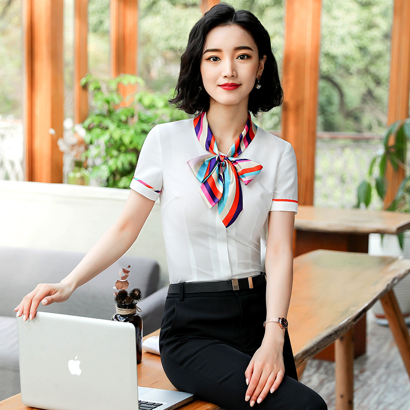 호텔 프론트 데스크 계산원 작업복 미용실 셔츠 작업복 반팔 여성 기질 프로페셔널 웨어 웨스턴 스타일 OL 셔츠