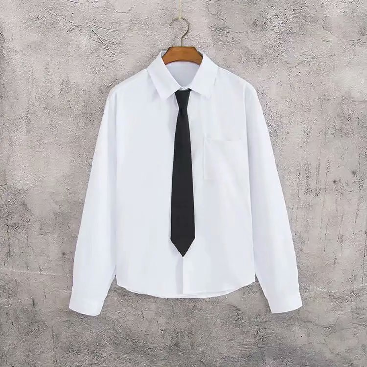 홍콩 스타일 넥타이 흰색 셔츠 남자의 긴 소매 한국어 유행 느슨한 캐주얼 셔츠 가을 학생 원피스 셔츠 커플
