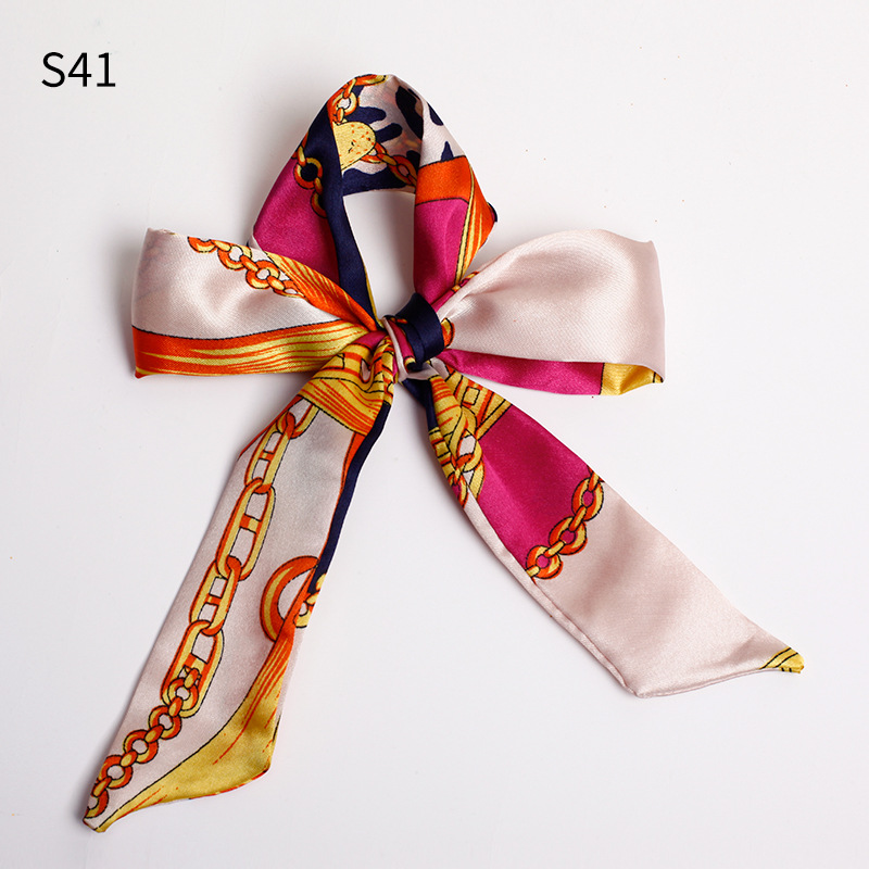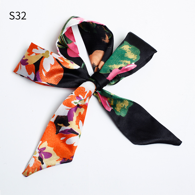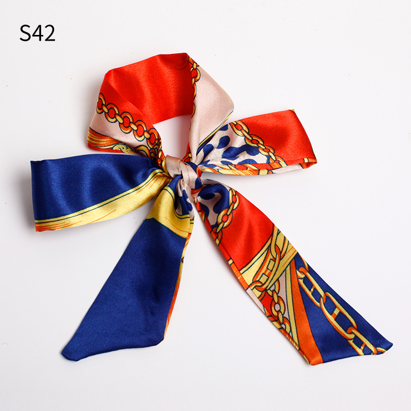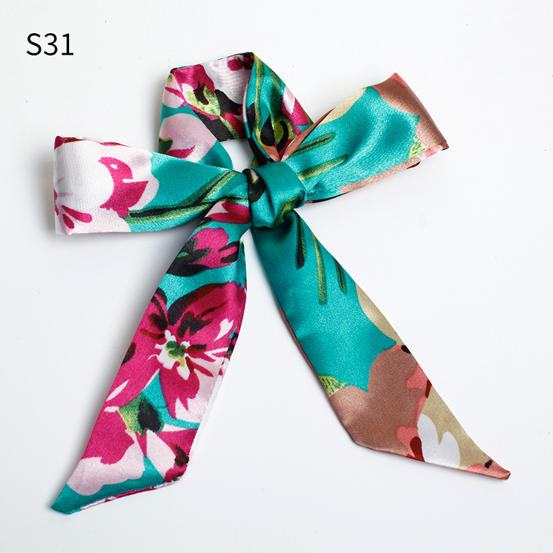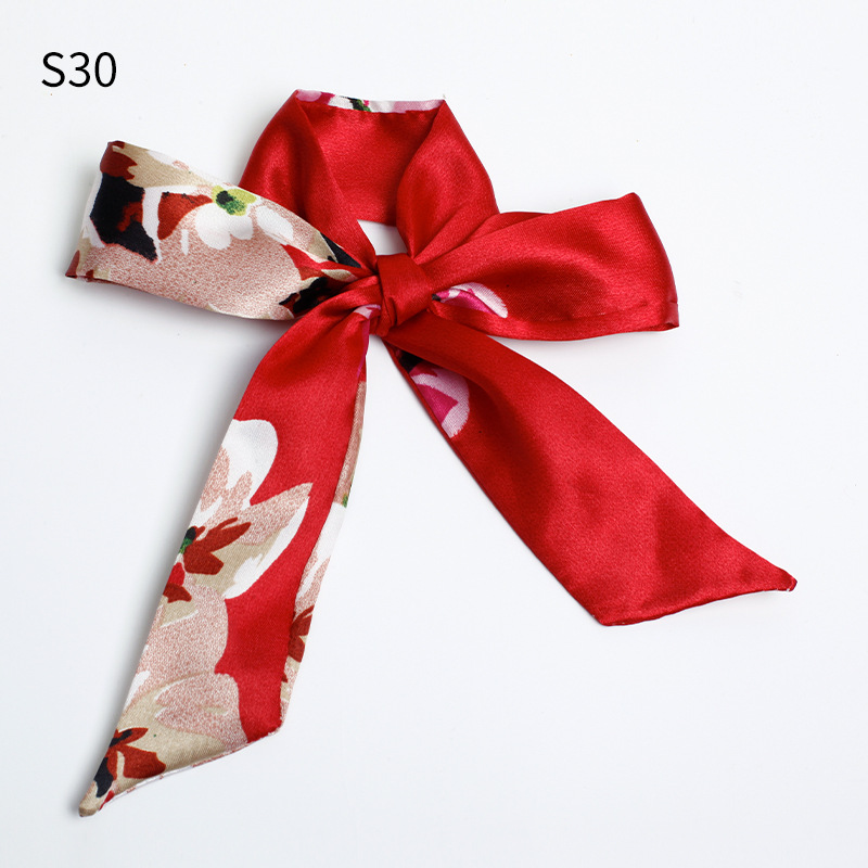 실크 스카프 공장 도매 바인딩 백 바인딩 활 긴 스트립 헤어 벨트 리본 작은 실크 스카프 선물 상자 선물 벨트