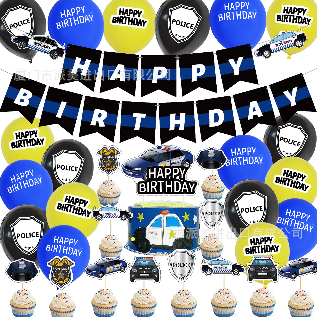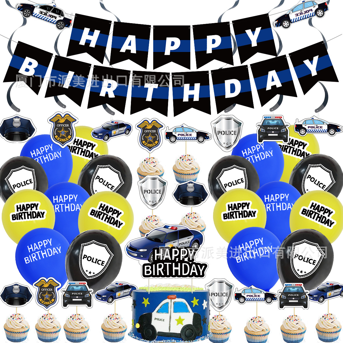 새로운 경찰차 테마 생일 파티 장식 편지 깃발 라텍스 풍선 케이크 깃발 나선 매력스토어 가기