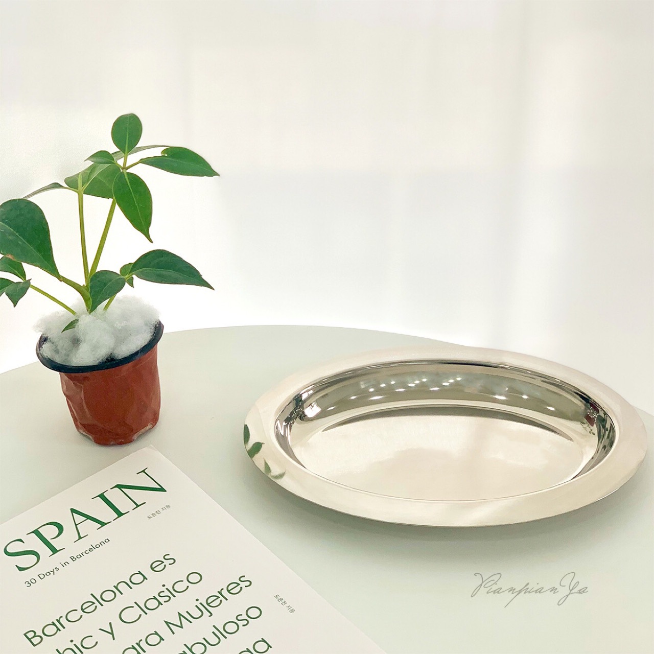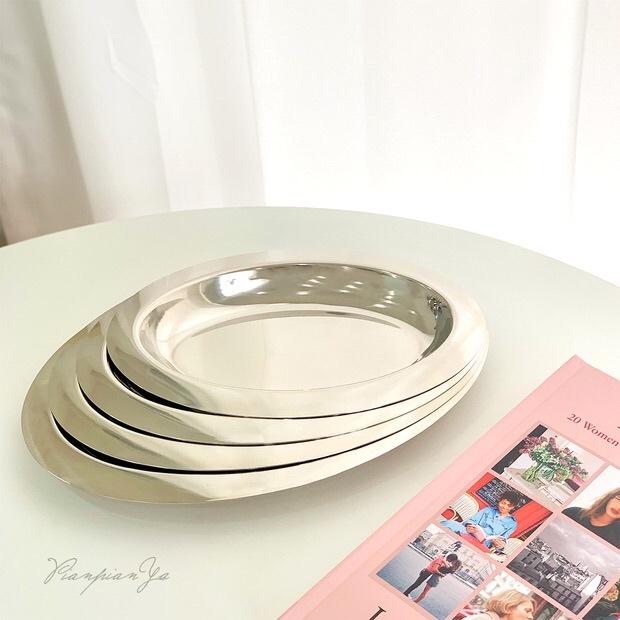 타원형 금속 트레이 스테인리스 식사용 트레이 광택 있는 아침식사 트레이 빵 트레이 과일 트레이 정교한 디저트 트레이스토어 가기