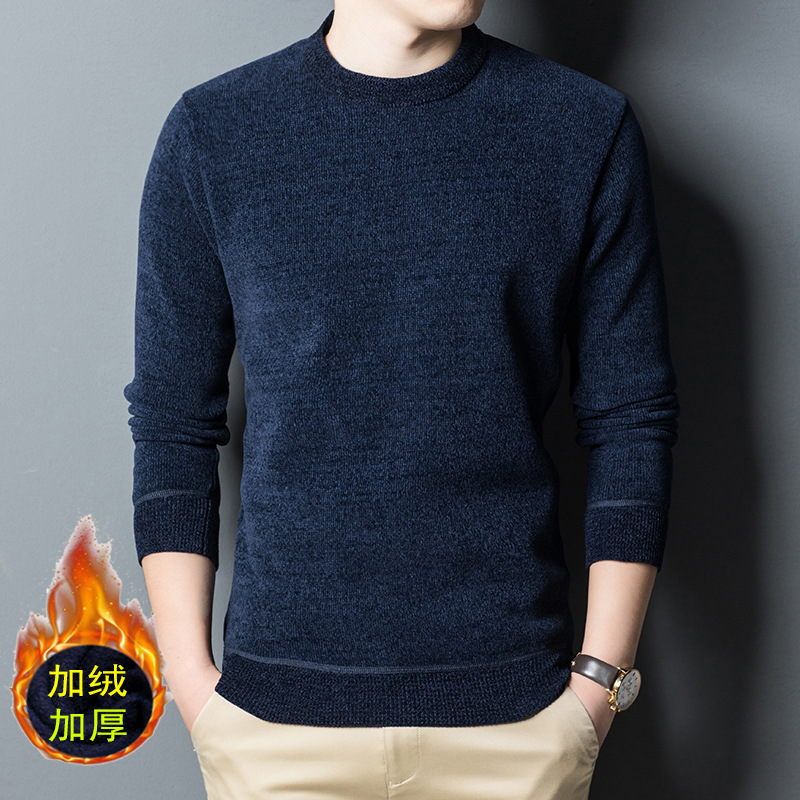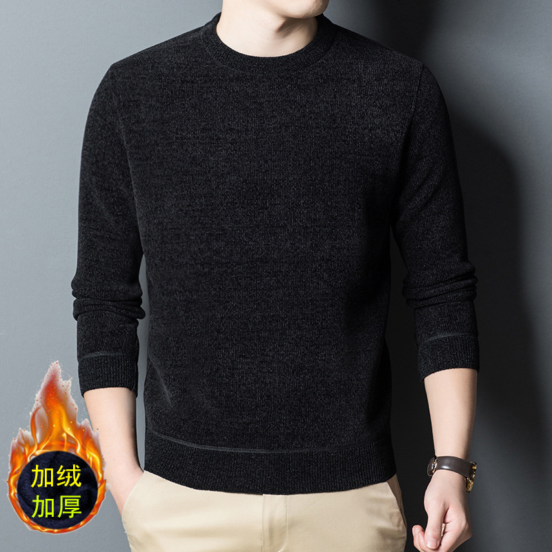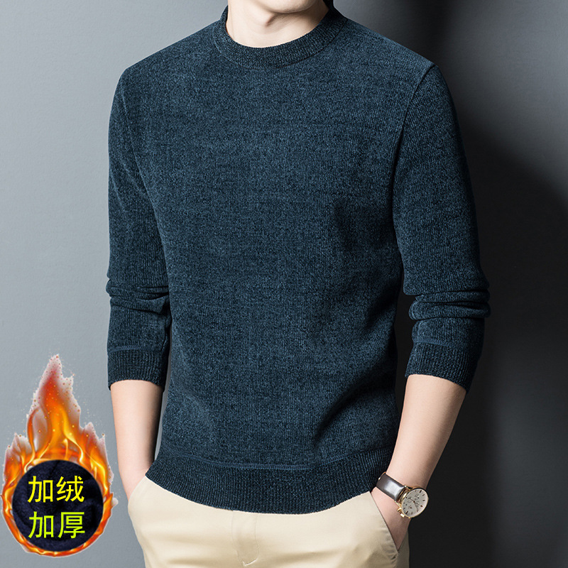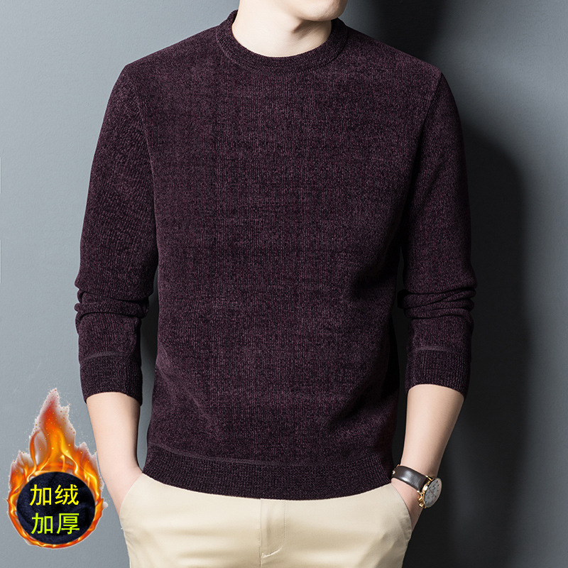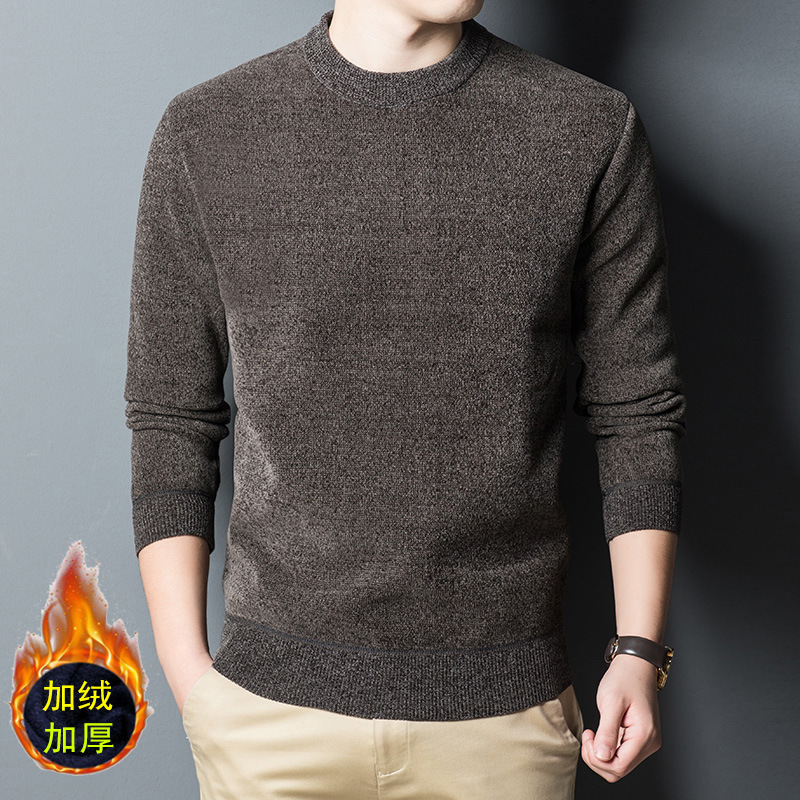 셔닐 기모 스웨터 남자의 가을과 겨울 기모 패딩 스웨터 느슨한 아빠 바닥 셔츠 머리카락의 세대