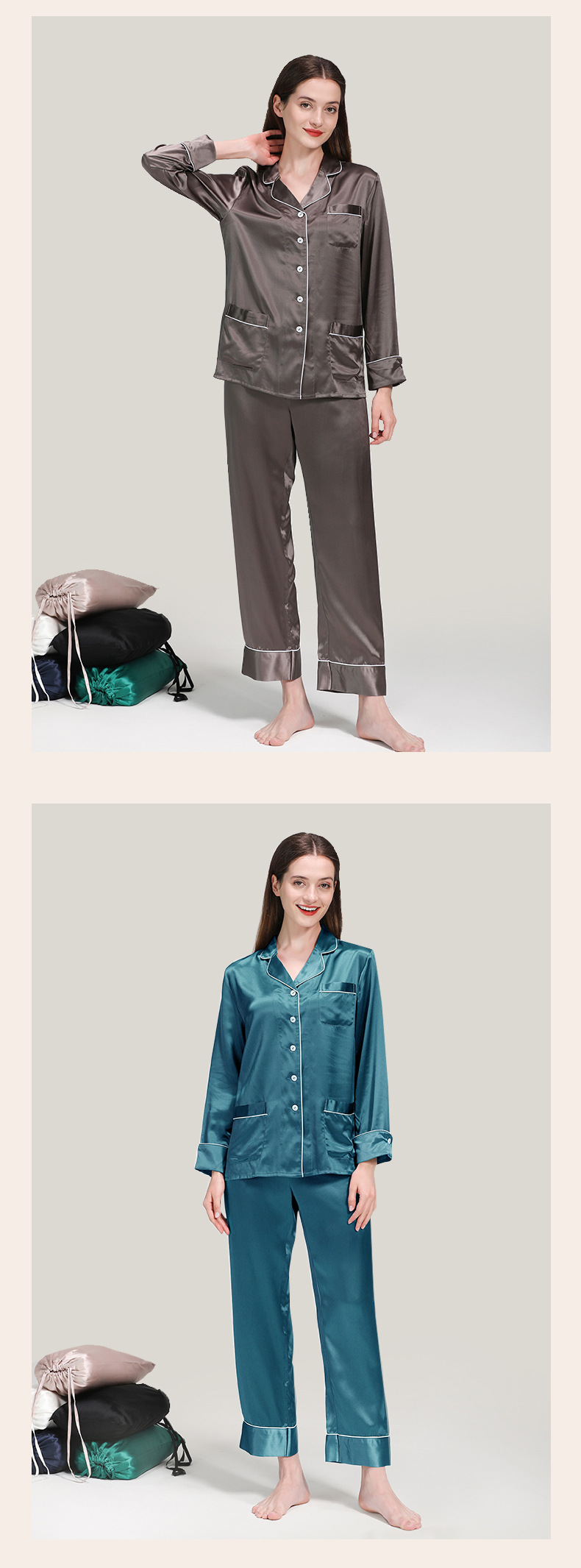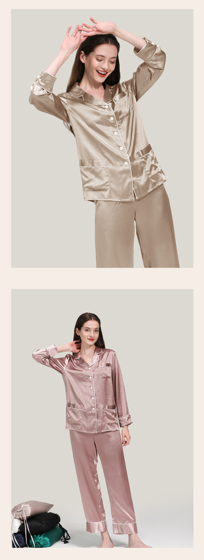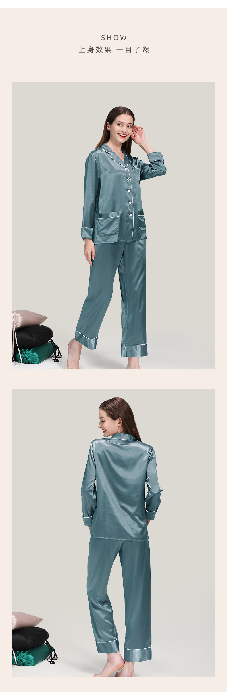코쿠니22 무미 실크 잠옷 여성용 100% 뽕나무 실크 긴팔 세트 다중 포켓 외출복 가능 잠옷스토어 가기