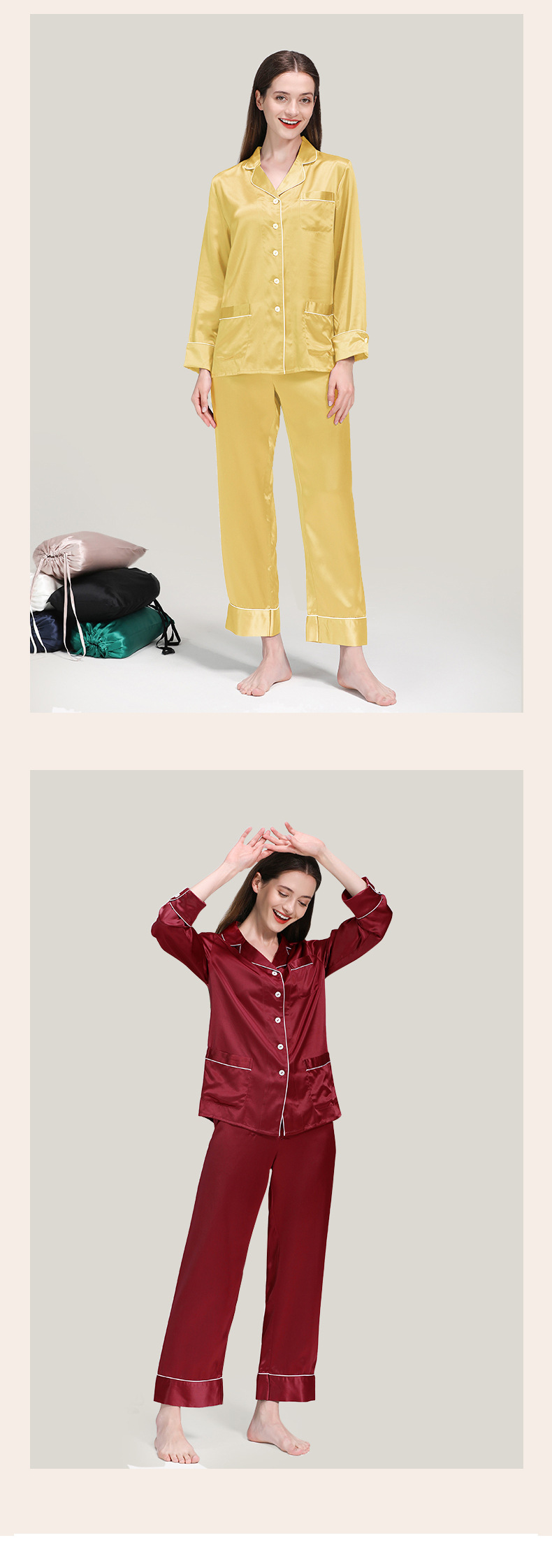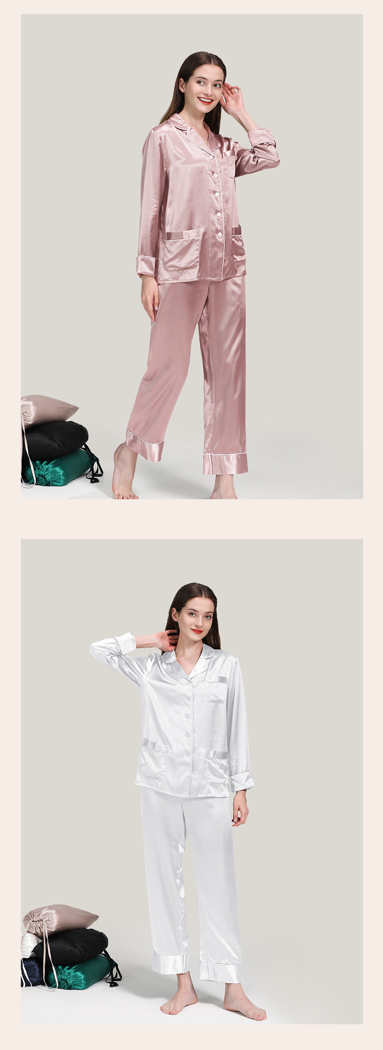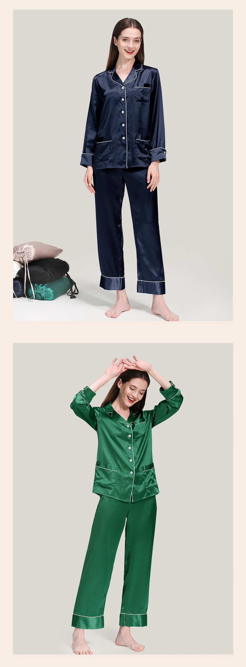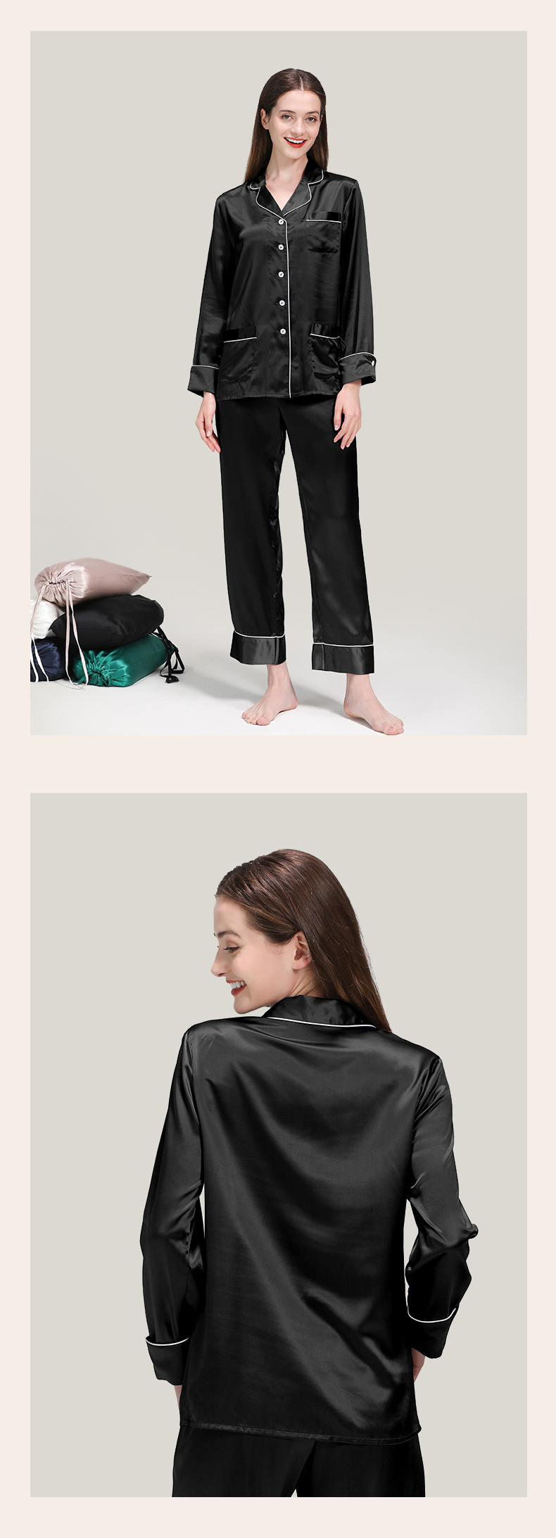 코쿠니22 무미 실크 잠옷 여성용 100% 뽕나무 실크 긴팔 세트 다중 포켓 외출복 가능 잠옷스토어 가기