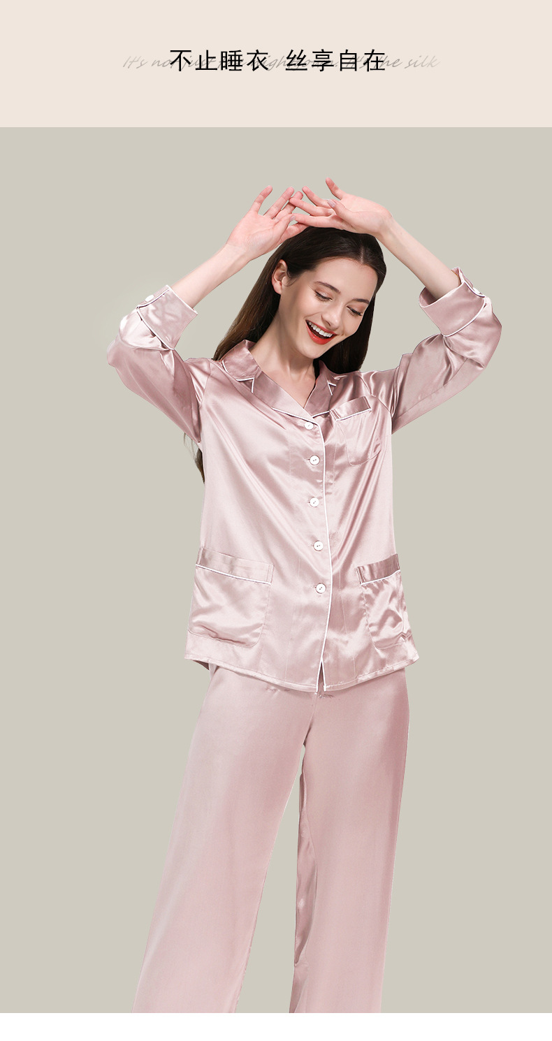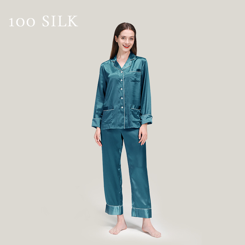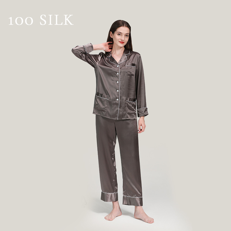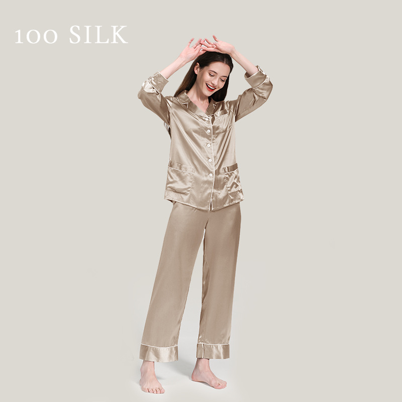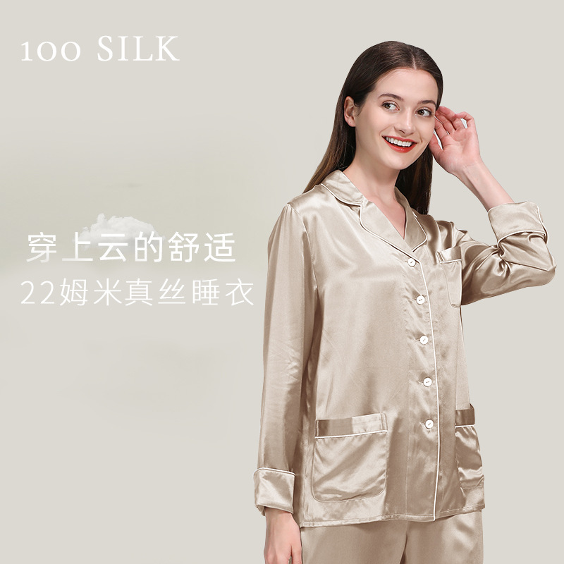 코쿠니22 무미 실크 잠옷 여성용 100% 뽕나무 실크 긴팔 세트 다중 포켓 외출복 가능 잠옷