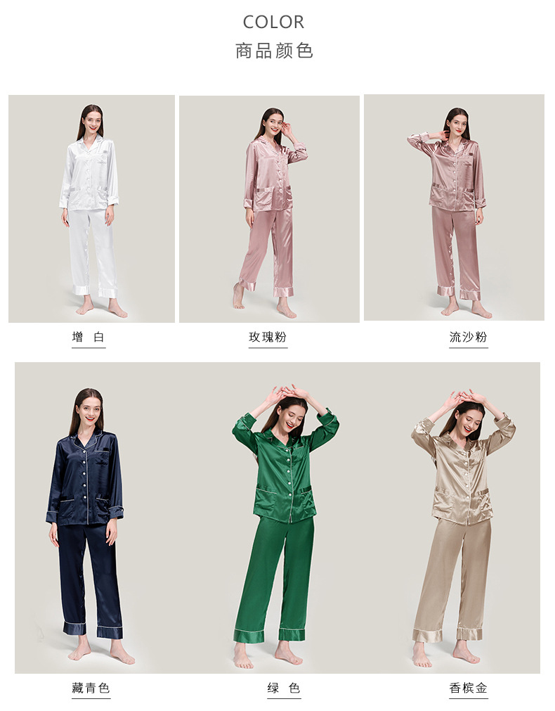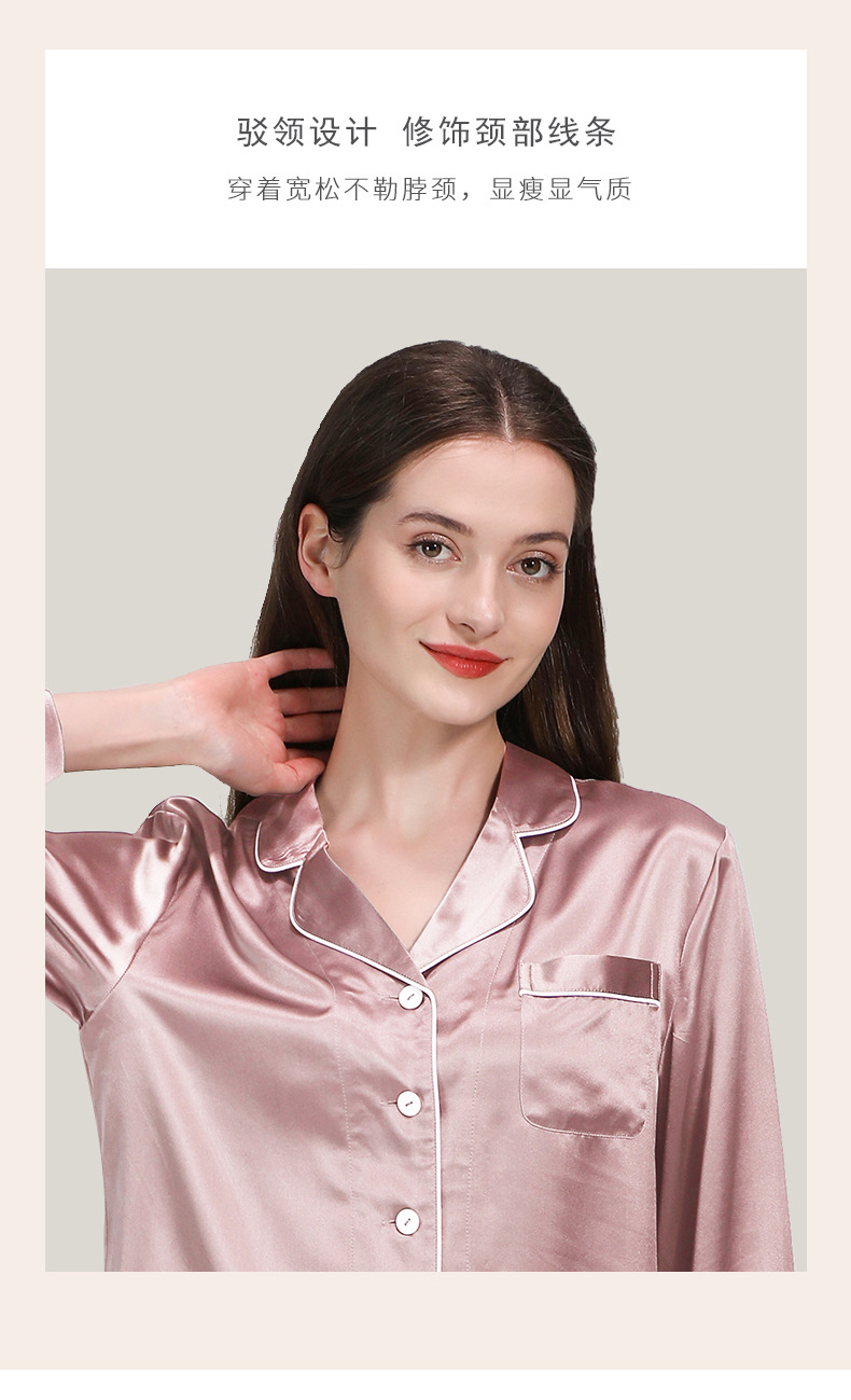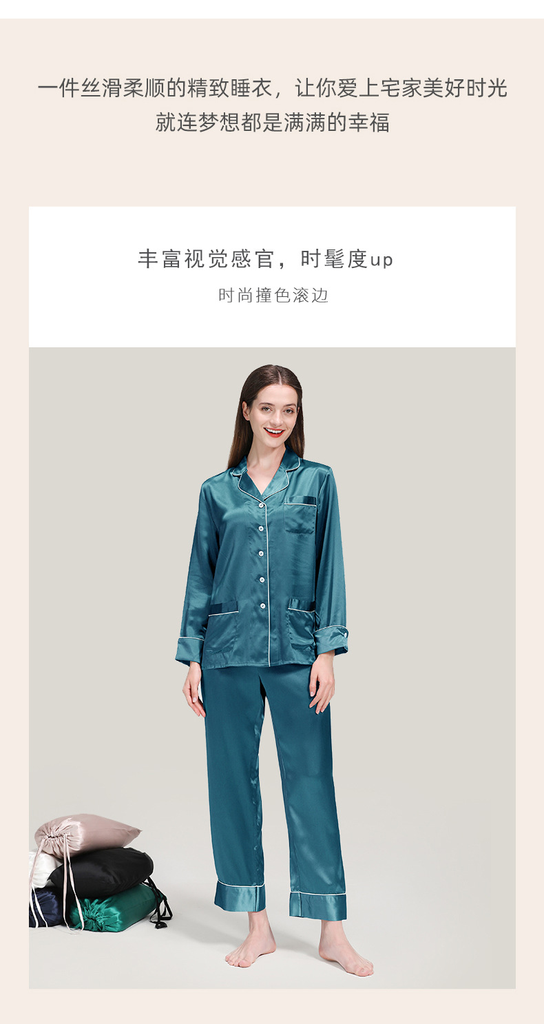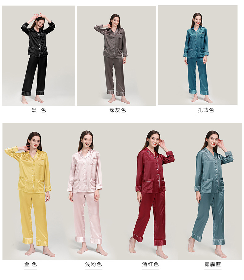 코쿠니22 무미 실크 잠옷 여성용 100% 뽕나무 실크 긴팔 세트 다중 포켓 외출복 가능 잠옷