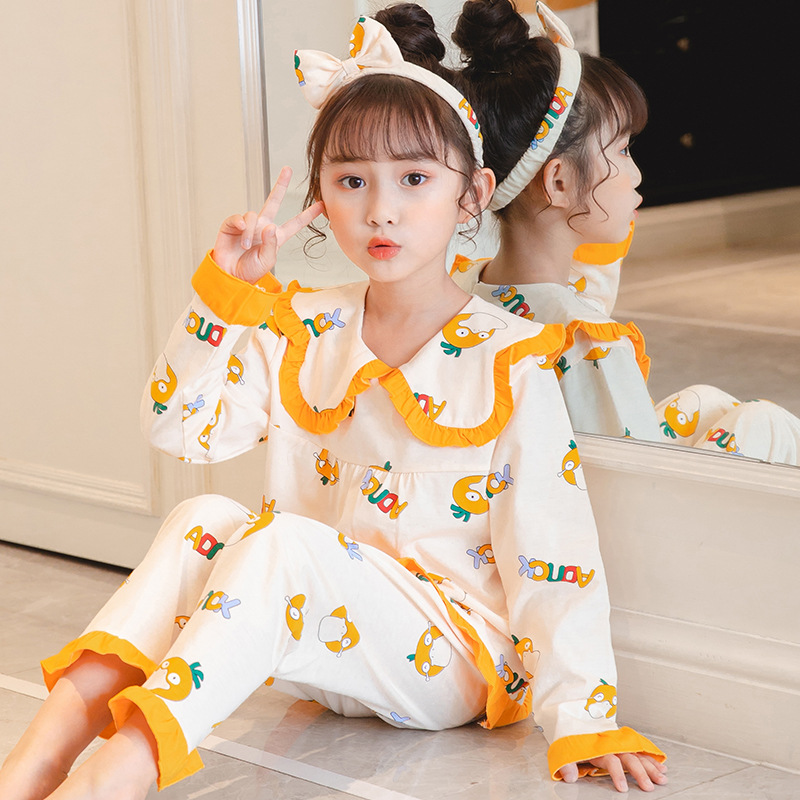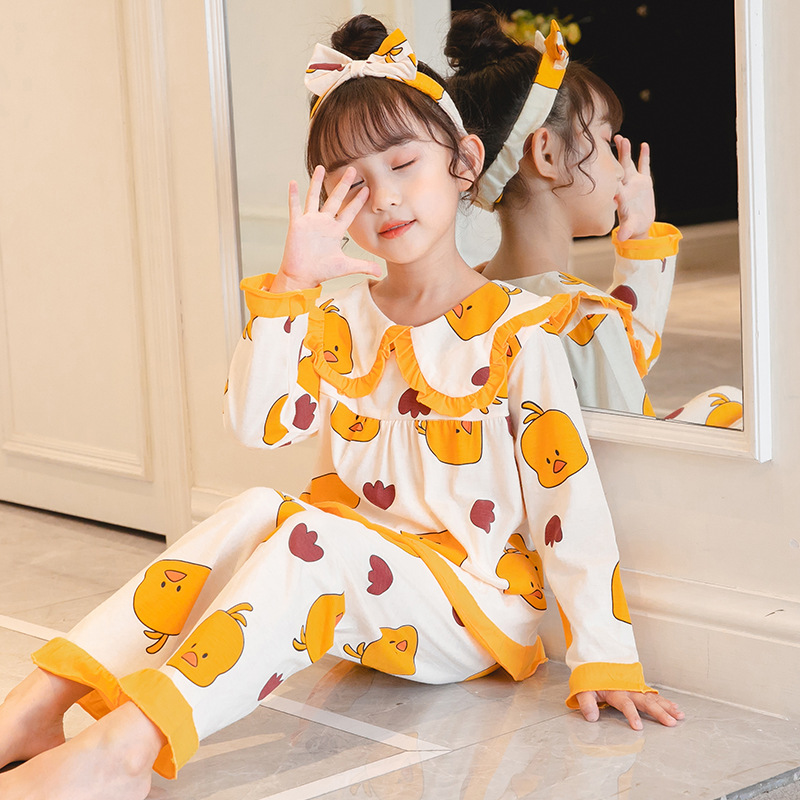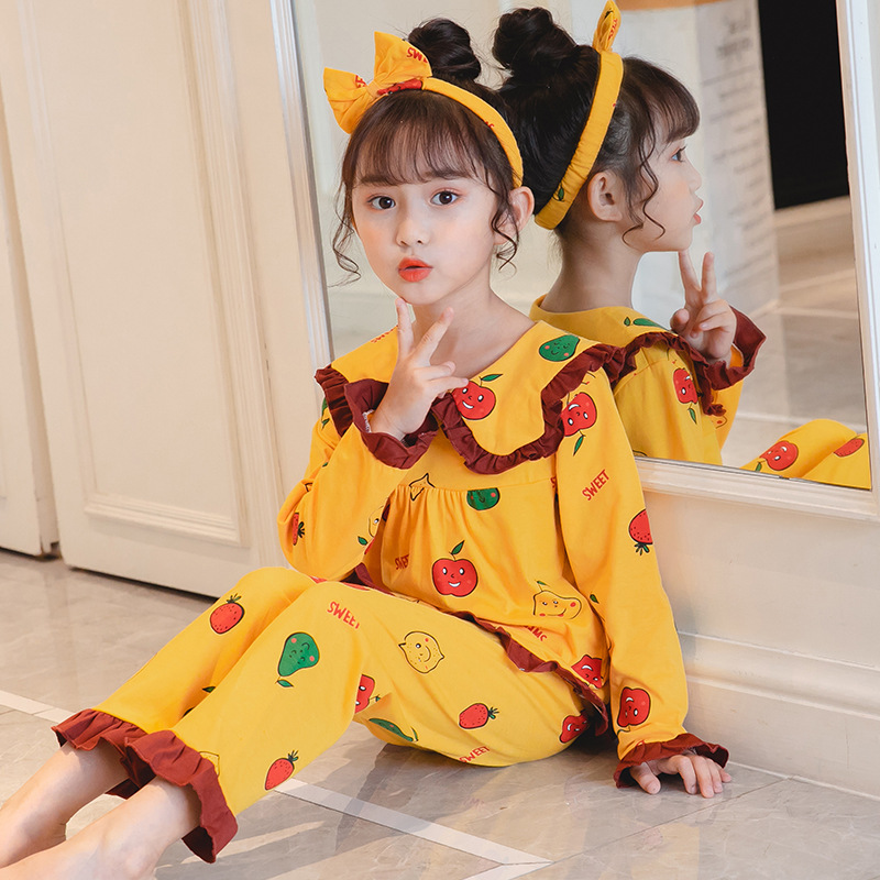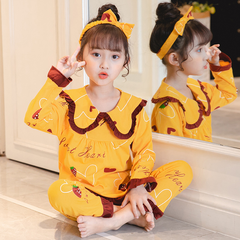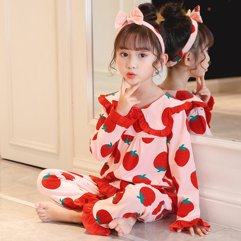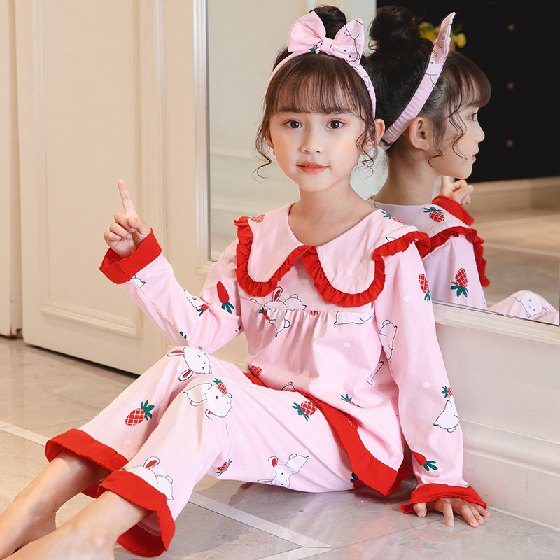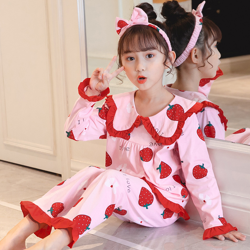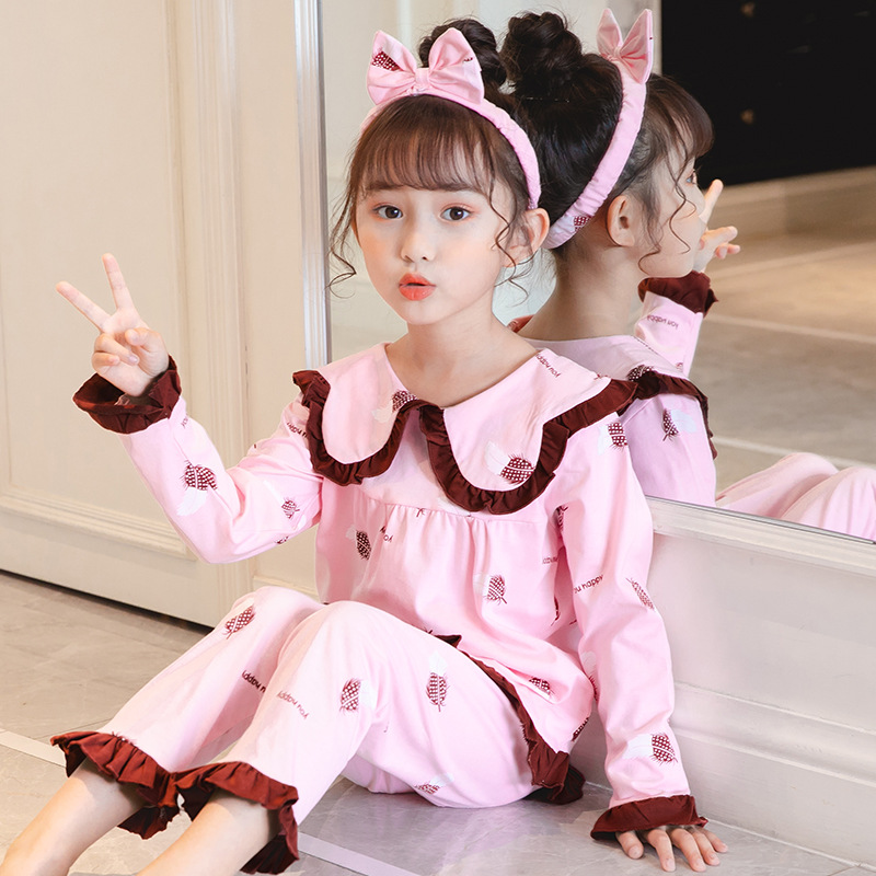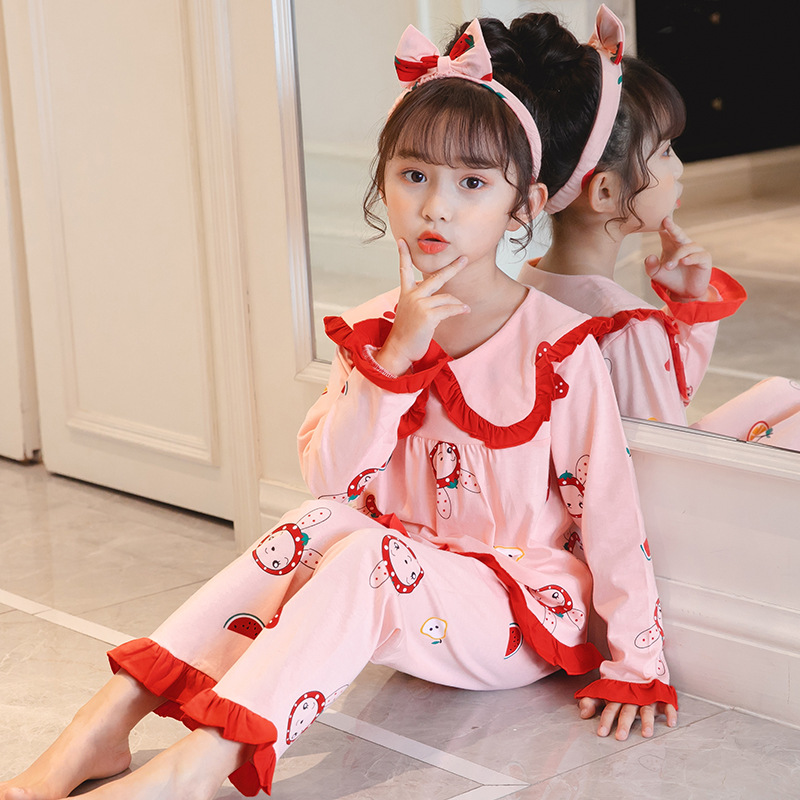 어린이 잠옷 긴팔 니트 코튼 봄과 가을 소녀 공주 큰 어린이 세트 어린 소녀 아기 가정 옷스토어 가기
