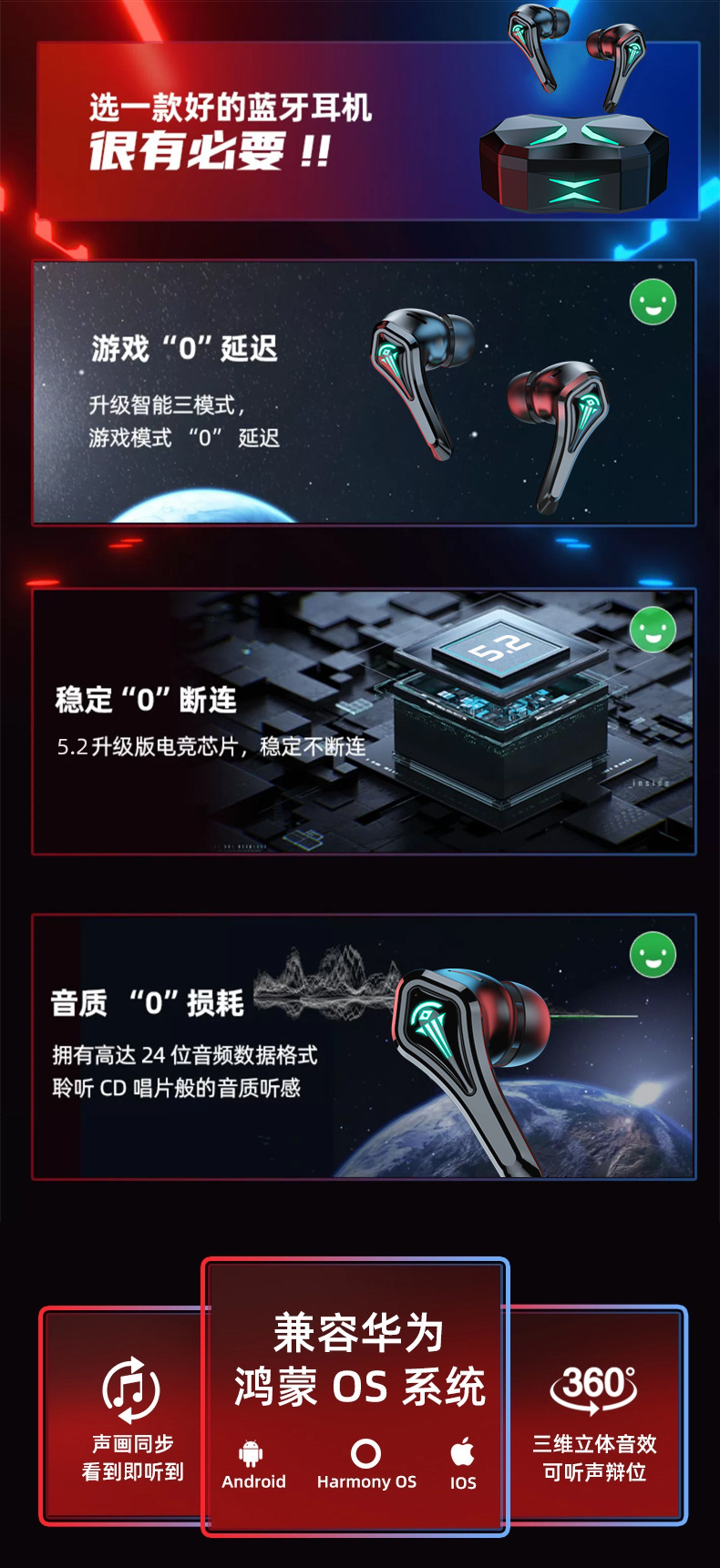 TWS-A10 블루투스 헤드셋 무선 바 이노 럴 치킨 먹는 게임 전자 스포츠 손 투어 개인 모델 도매 공장 직접 공급