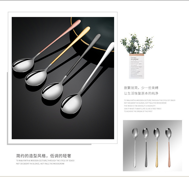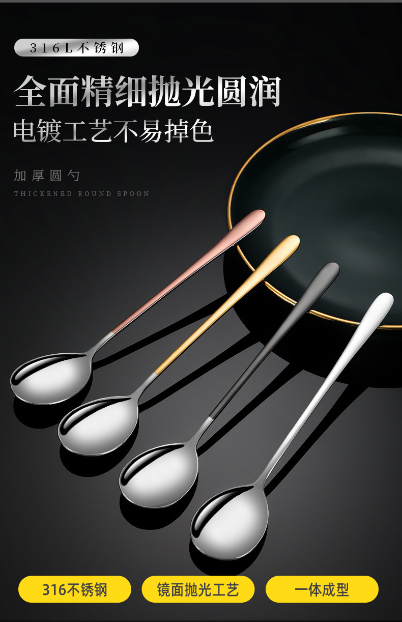 316 스테인레스 스틸 스푼 가정용 304 한국식 스푼 긴 손잡이 커피 스푼 믹싱 스푼 아이스크림 스푼 디저트 아이스크림 스푼