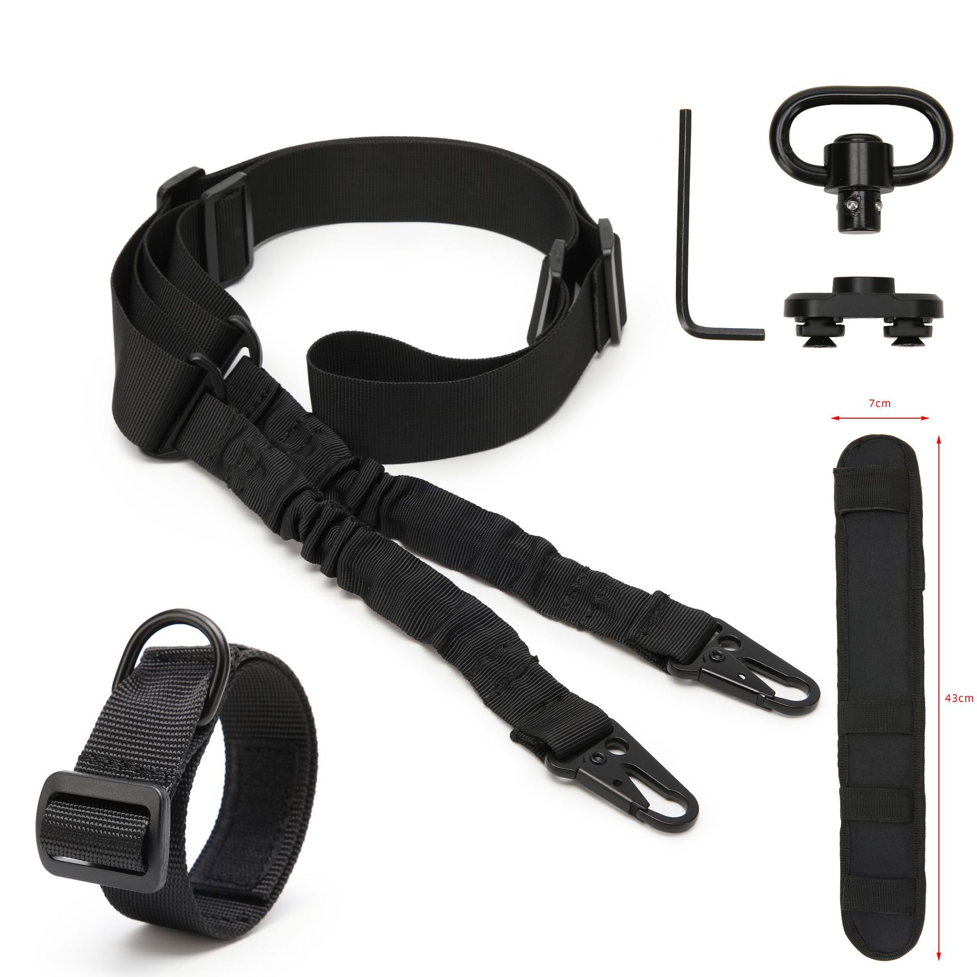 0.2kg,一条85英寸双点绳+一条17.5英寸肩垫+枪托织带+QD环快拆扣+底座