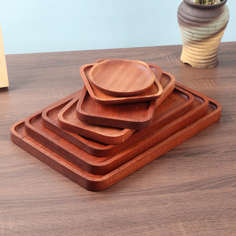 단단한 나무 나무 쟁반 검은 백단향 찻잔 홀더 직사각형 빵 접시 홈 호텔 식기 커피 로고스토어 가기
