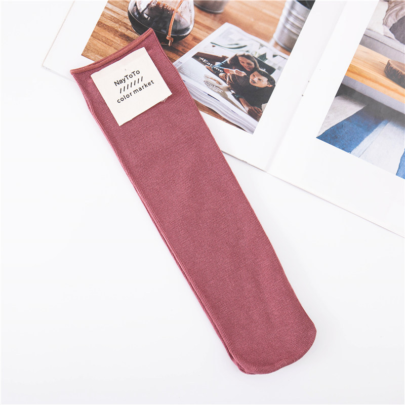 모란디 컬러 스타킹 여성의 유행 순면 한국 일본식 컬 여름과 가을 새로운 얇은 중간 튜브 스택 스타킹