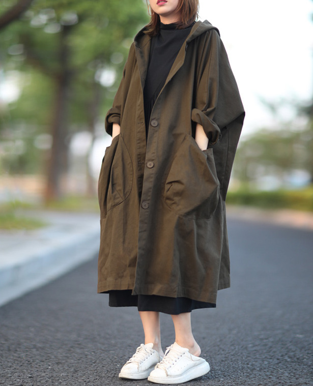 새로운 플러스 사이즈 ~ 여성용 예술적 루즈한 오버 더 니 롱 빅 포켓 후드 통근 코트스토어 가기