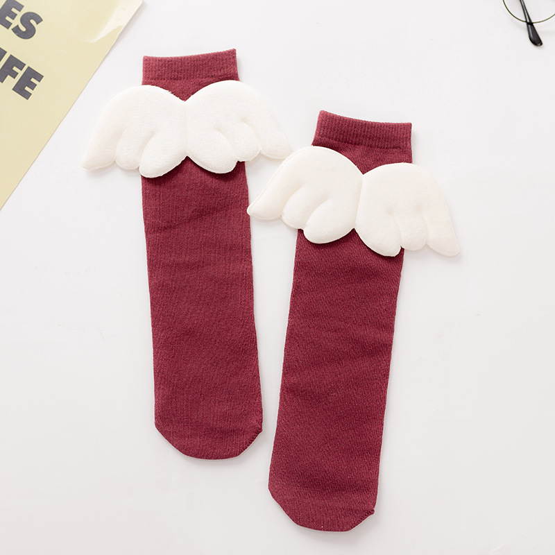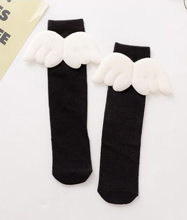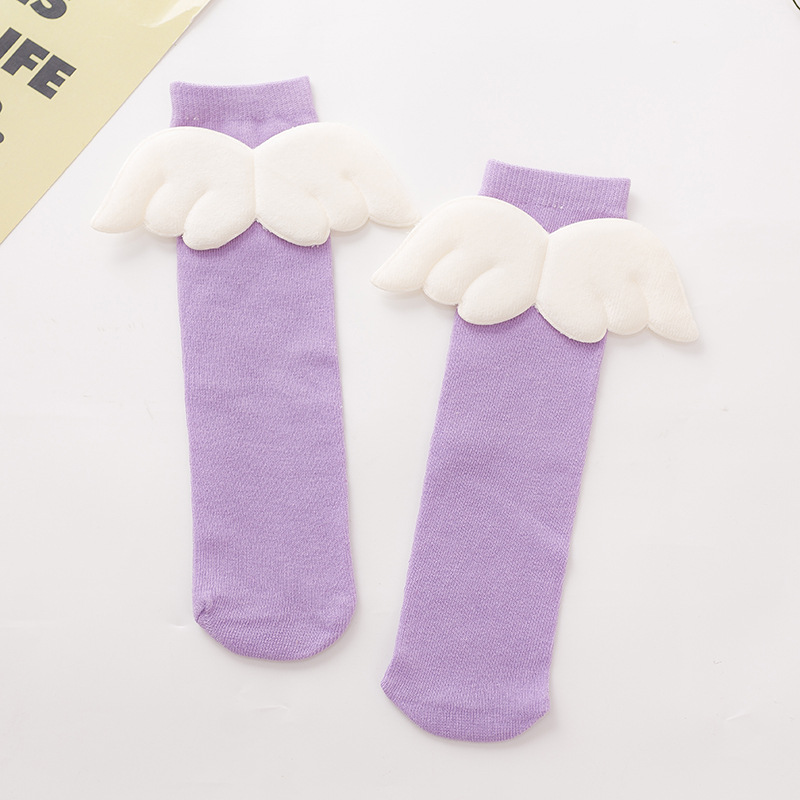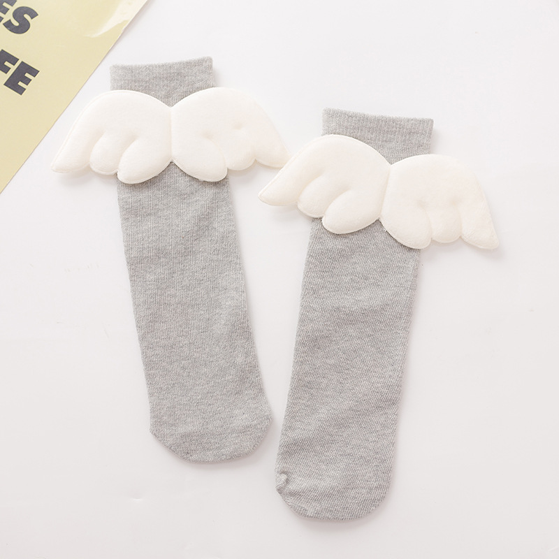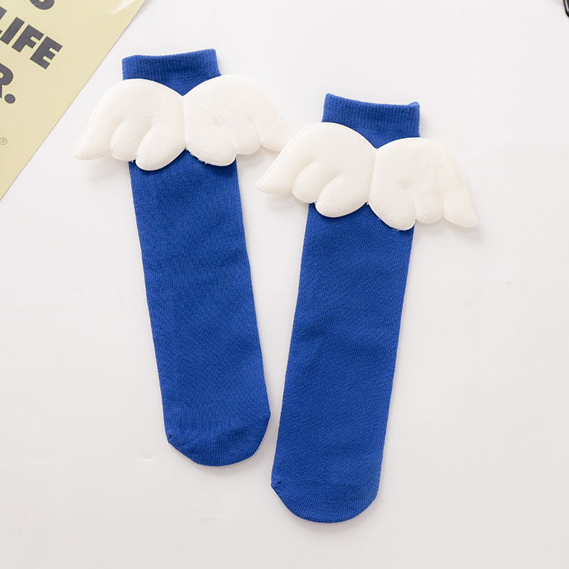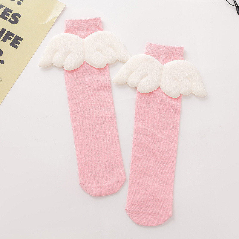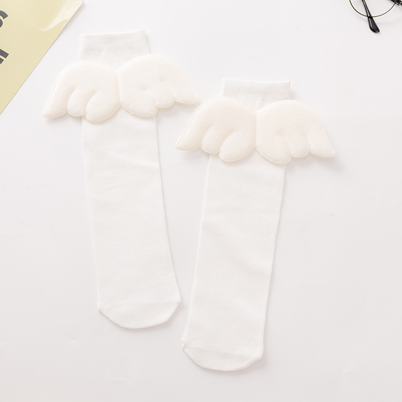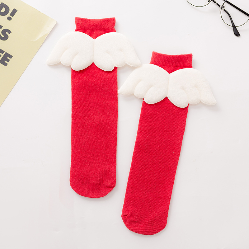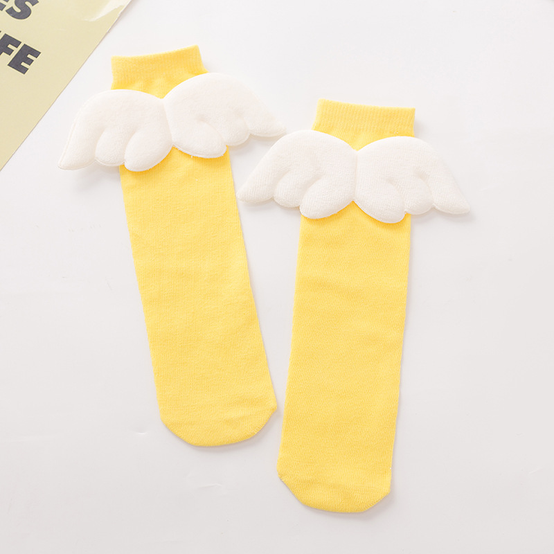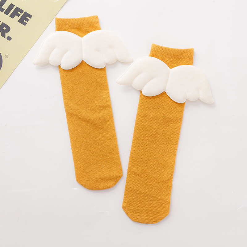 봄 가을과 겨울 어린이 스택 양말 한국 크리 에이 티브 귀여운 소녀 단색 날개 아기 소년 중간 길이 양말 공주 양말