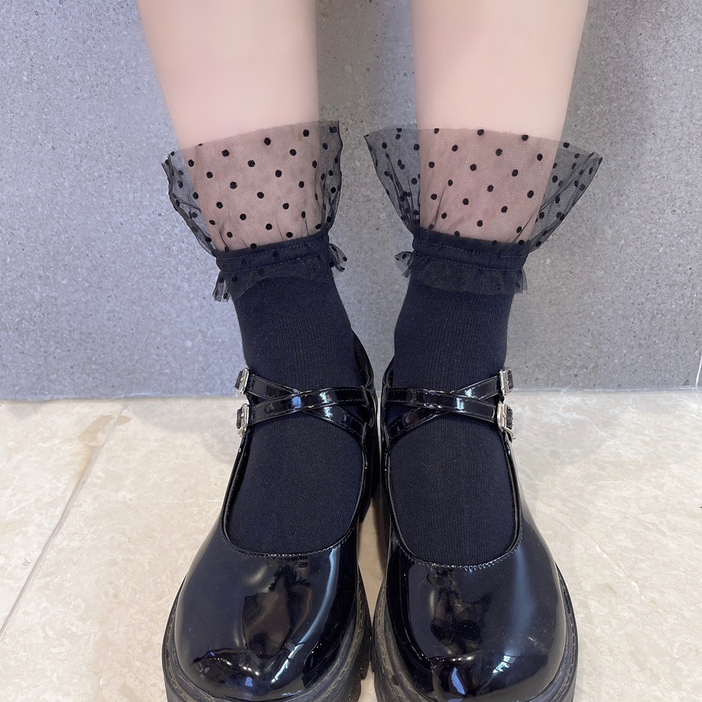 가을과 겨울 새로운면 세로 줄무늬 얽히고 설킨 레이스 짧은 양말 일본식 다크 블랙 빈티지 밀크 화이트 스택 여성용스토어 가기