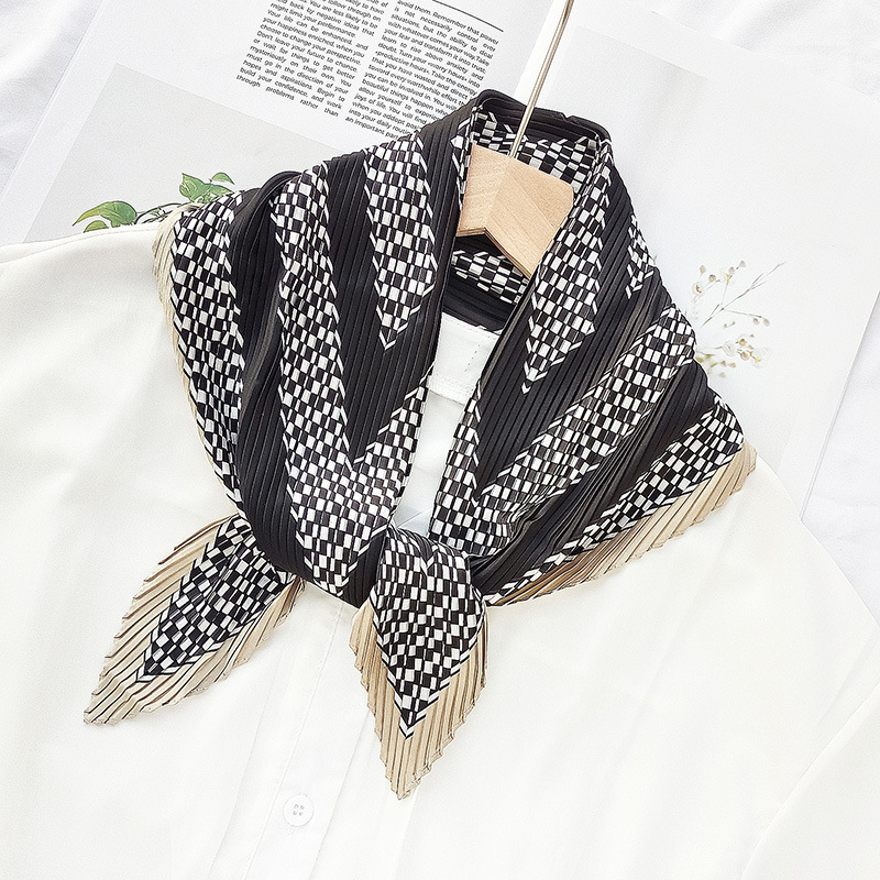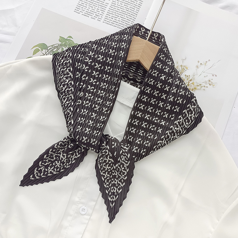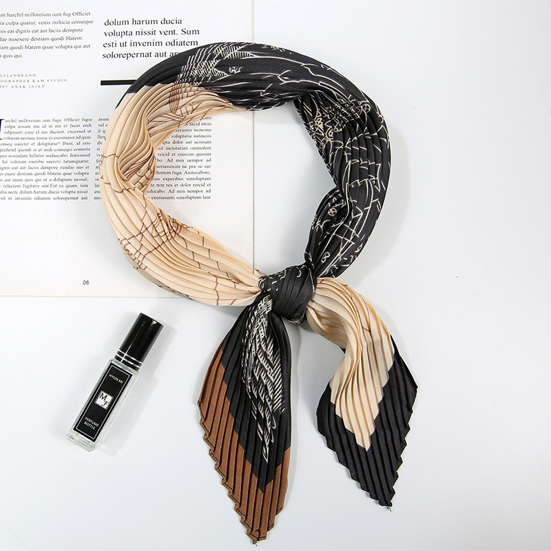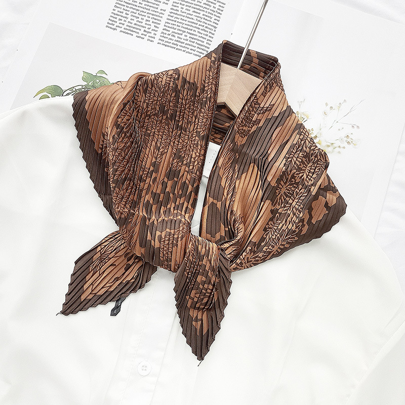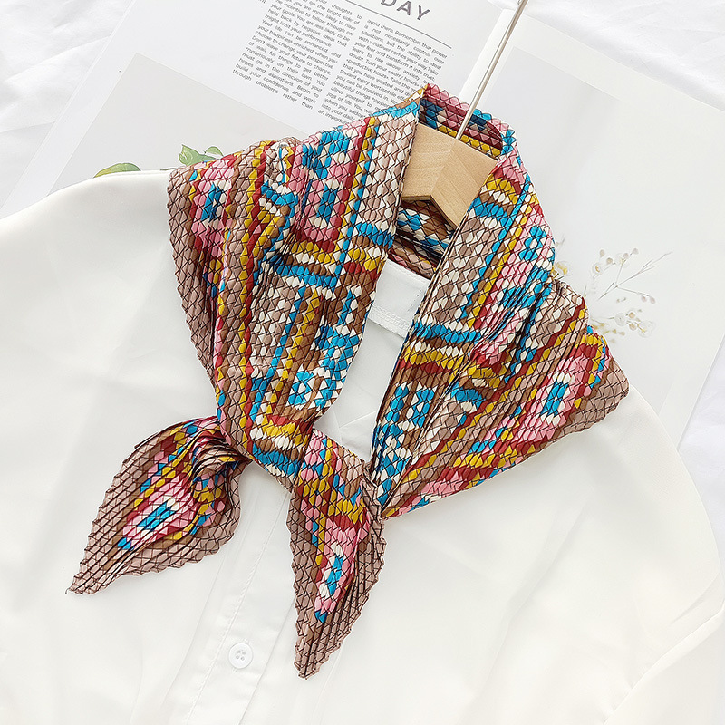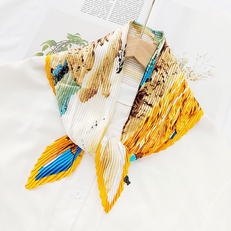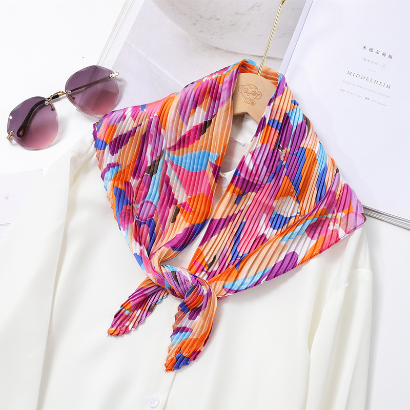2025 봄 여름 신상 주름 실크 스카프 쉬폰 프린트 주름 스카프 한국 스타일 장식용 직업용 스카프 머리띠